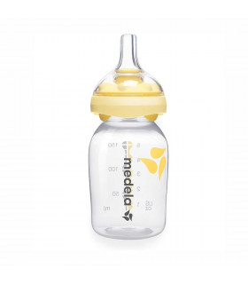 Biberón diseñado para alimentar al bebé con leche materna de forma natural, imitando la succión del pecho y evitando la ingesta de aire; capacidad 150 ml, sin bisfenol A, conforme a la norma EN 14350.