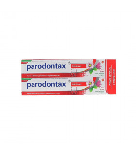 Parodontax Original Duplo 2x75 ml protege las encías, elimina la placa y previene el sangrado gingival. Fórmula tradicional con sal y extractos minerales. Pack ahorro.