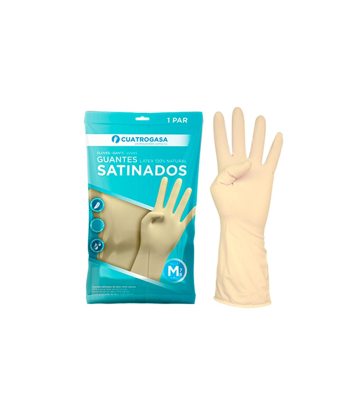 Guantes de látex sin polvo, ambidiestros y de acabado satinado, diseñados para ofrecer sensibilidad táctil, protección y agarre seguro en contextos sanitarios, industriales o domésticos.