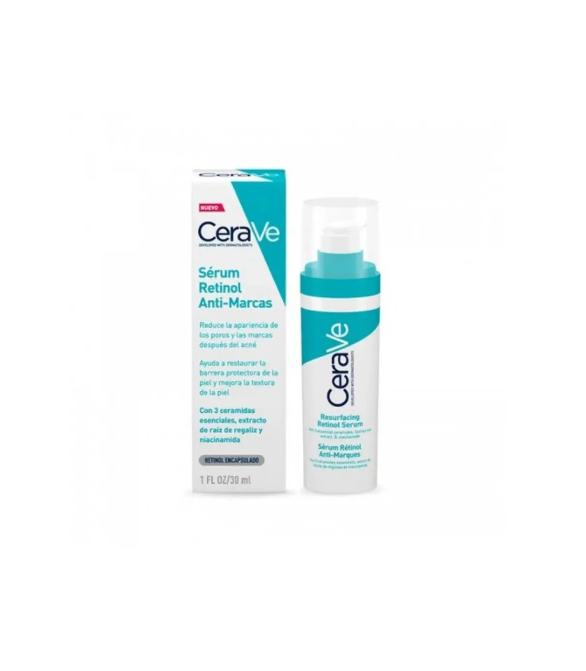 El CeraVe Sérum Retinol Imperfecciones 30 ml está formulado para tratar y prevenir imperfecciones, mejorar la textura de la piel y reducir marcas postacné. Contiene retinol puro de liberación progresiva que estimula la renovación celular de manera suave y eficaz.
