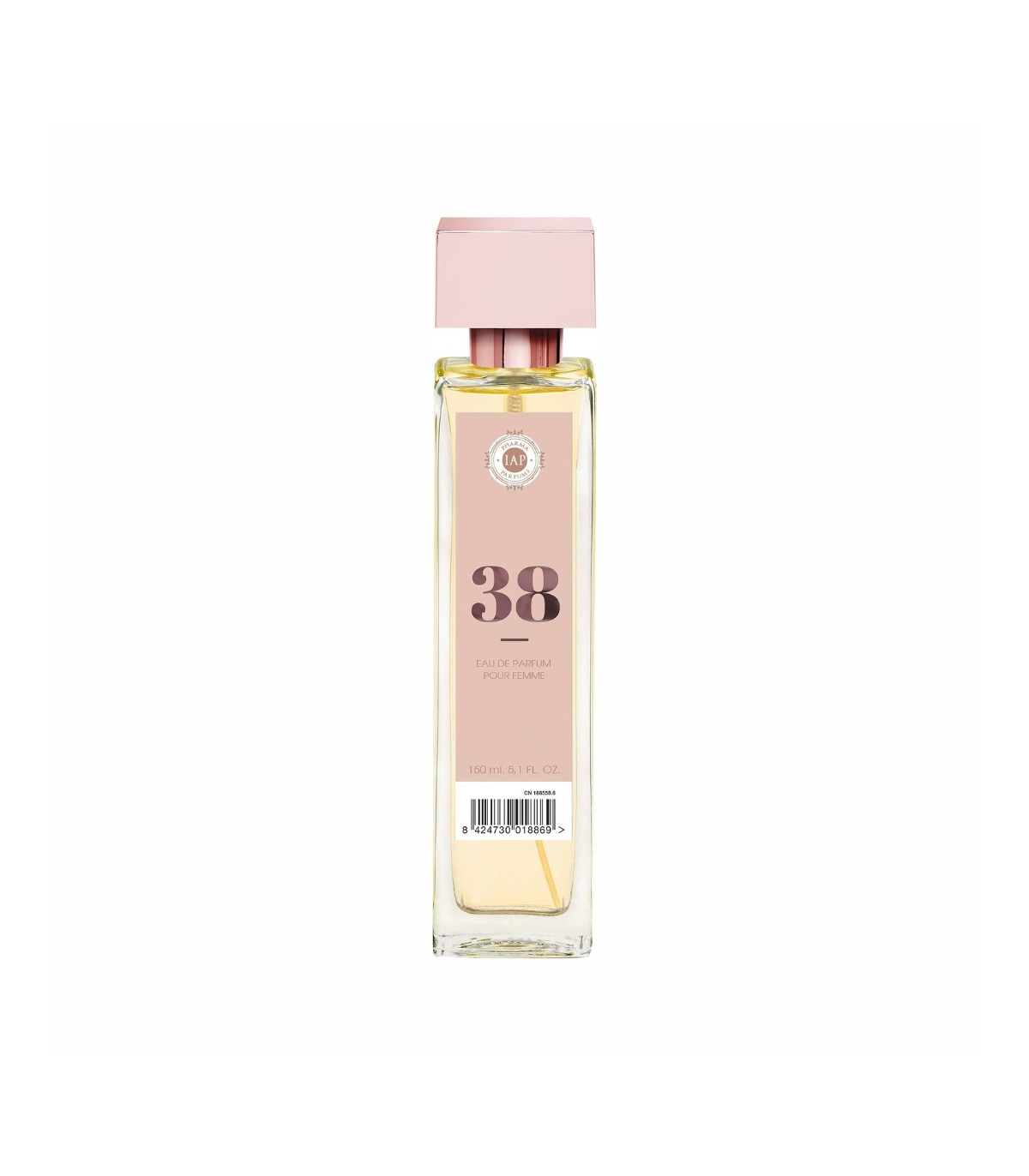 Eau de Parfum IAP Pharma Nº 38 (150 ml): fragancia femenina floral y fresca con toques cítricos. Ideal para el día a día, ligera y duradera.