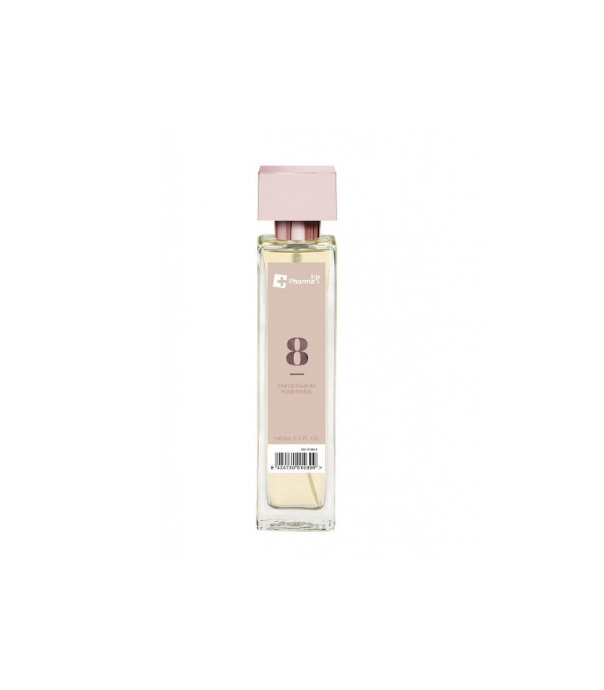 Perfume femenino Nº 8: aroma cítrico‑floral fresco con limón, lavanda y base de patchouli. IAP 150 ml, ideal para el día a día con estilo.