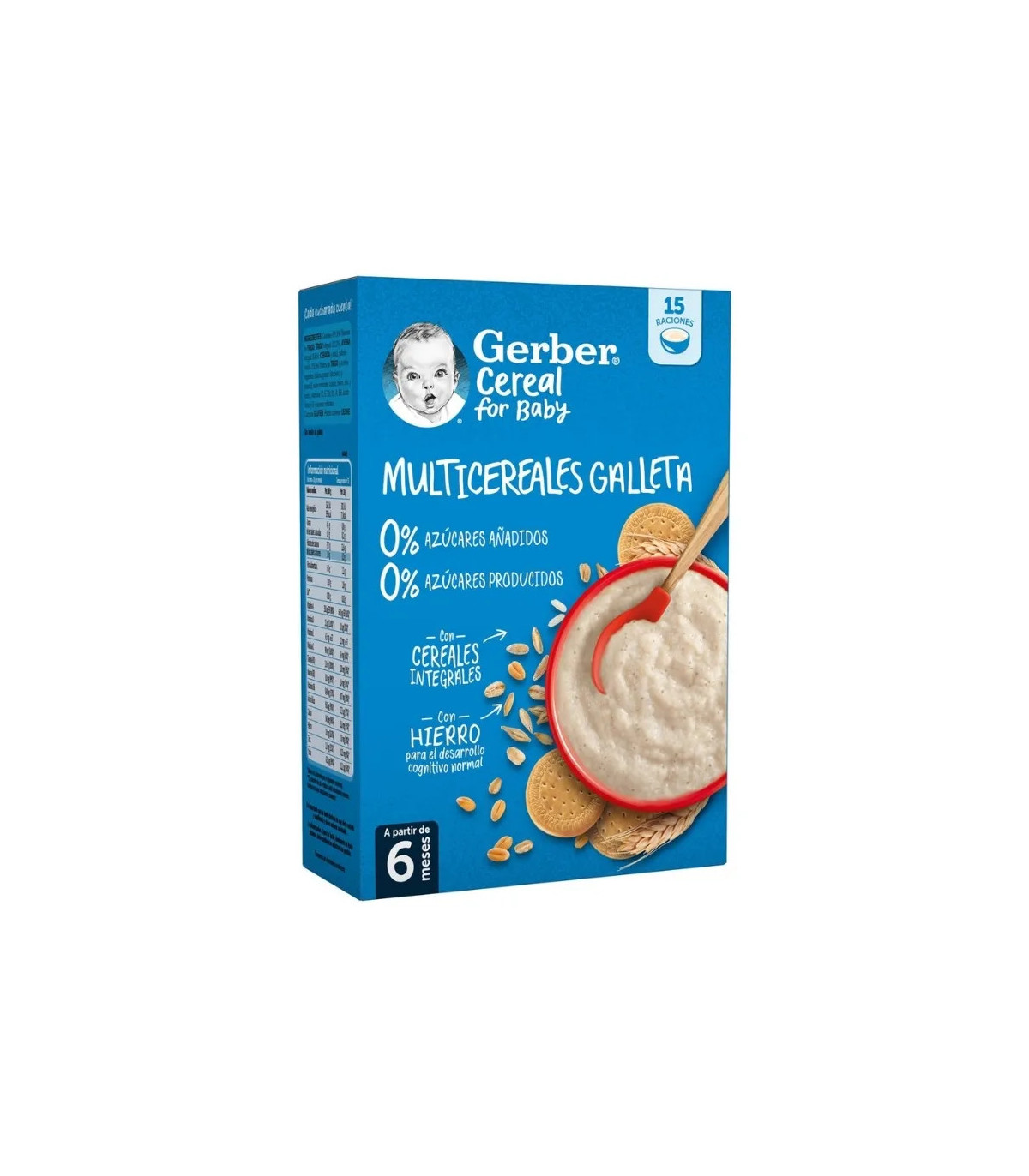 Papilla Gerber multicereales, una mezcla nutritiva y balanceada para bebés desde los 6 meses. Aporta energía y nutrientes para un desarrollo saludable.