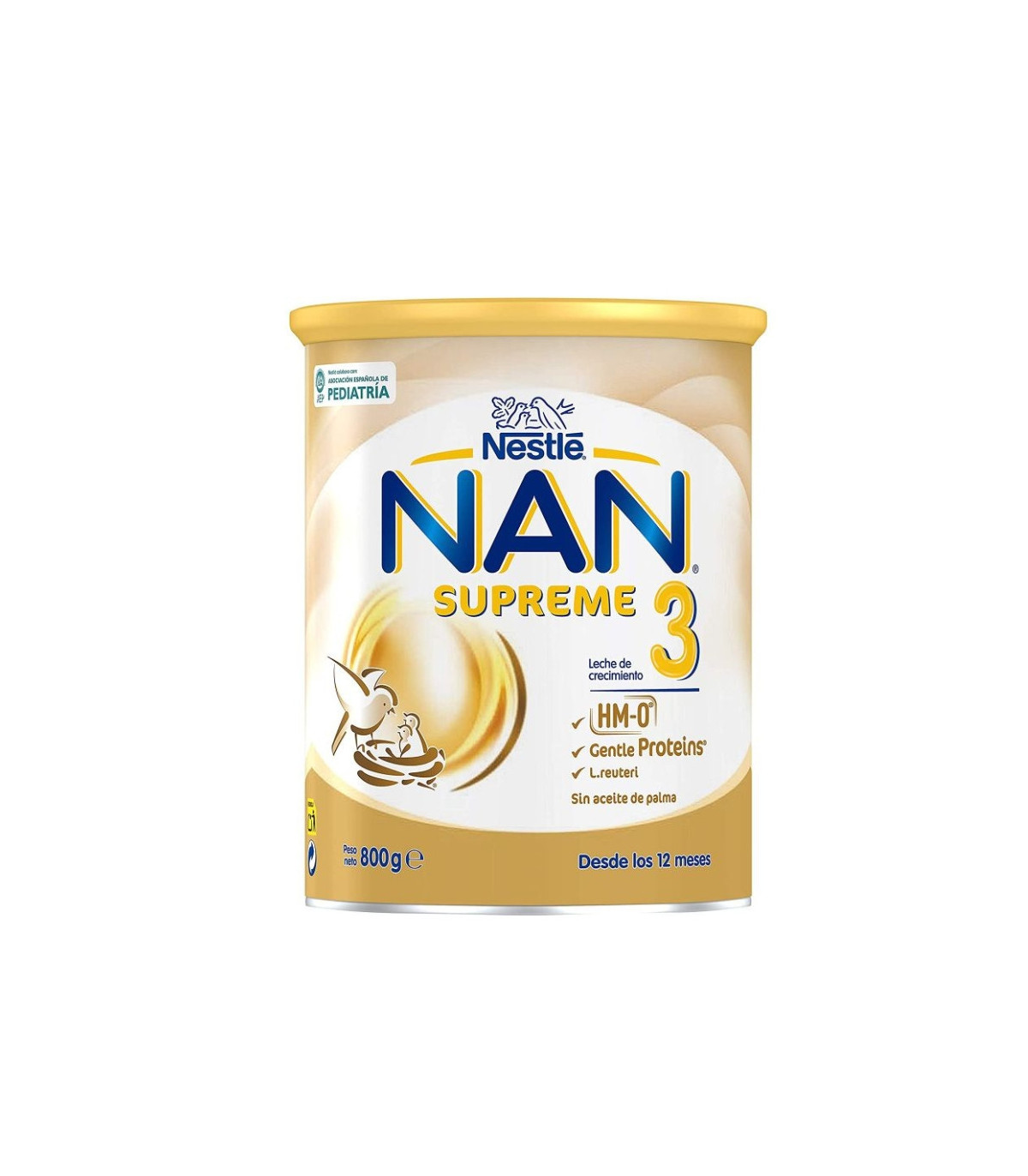 La NAN Supreme 3 800 g es una leche de crecimiento especialmente formulada para bebés a partir de los 12 meses. Su composición incluye proteínas parcialmente hidrolizadas que facilitan la digestión, además de vitaminas, minerales y ácidos grasos esenciales que contribuyen al desarrollo físico y cognitivo del niño.