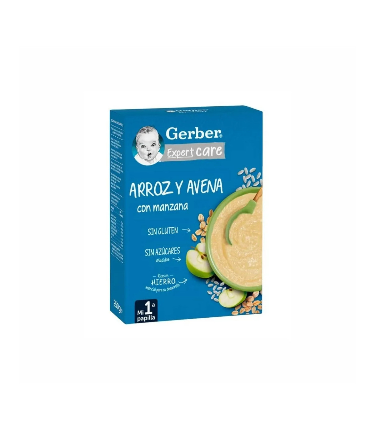 Gerber ExpertCare Papilla de Arroz y Avena con Manzana combina tres ingredientes de alta digestibilidad y sabor suave para facilitar la transición a los sólidos:
