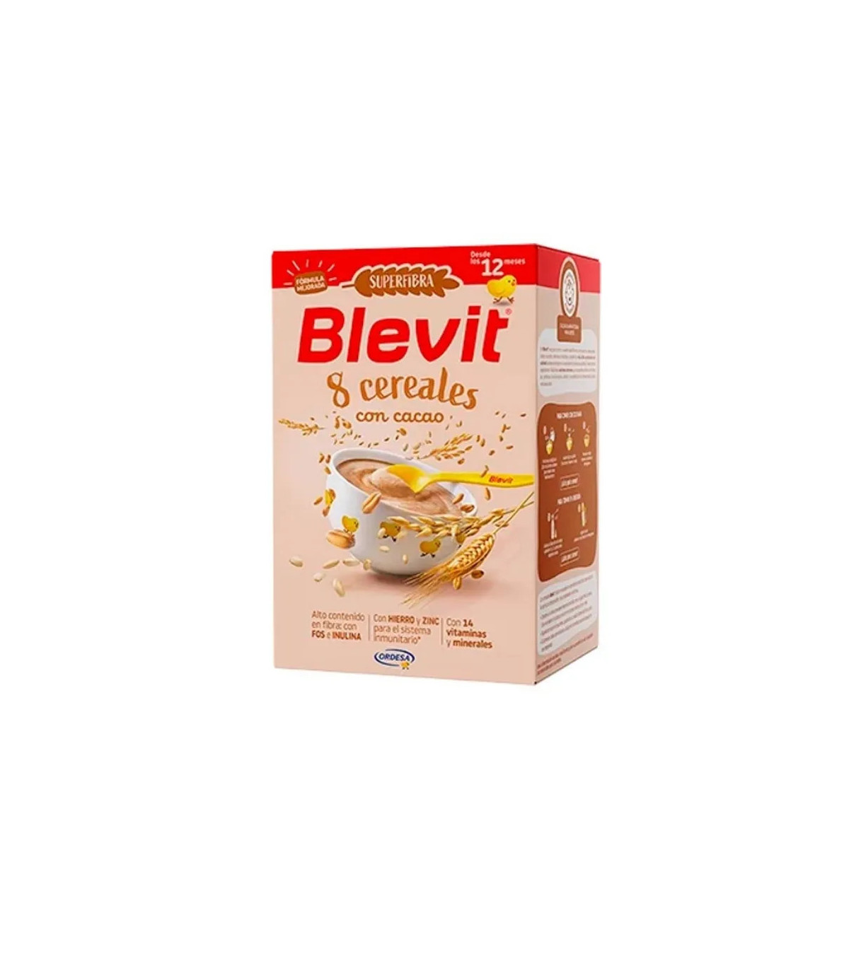Blevit Bibe 8 Cereales y Cacao, papilla nutritiva con fibra, vitaminas y minerales. Ideal para biberón, fácil digestión y gran sabor.