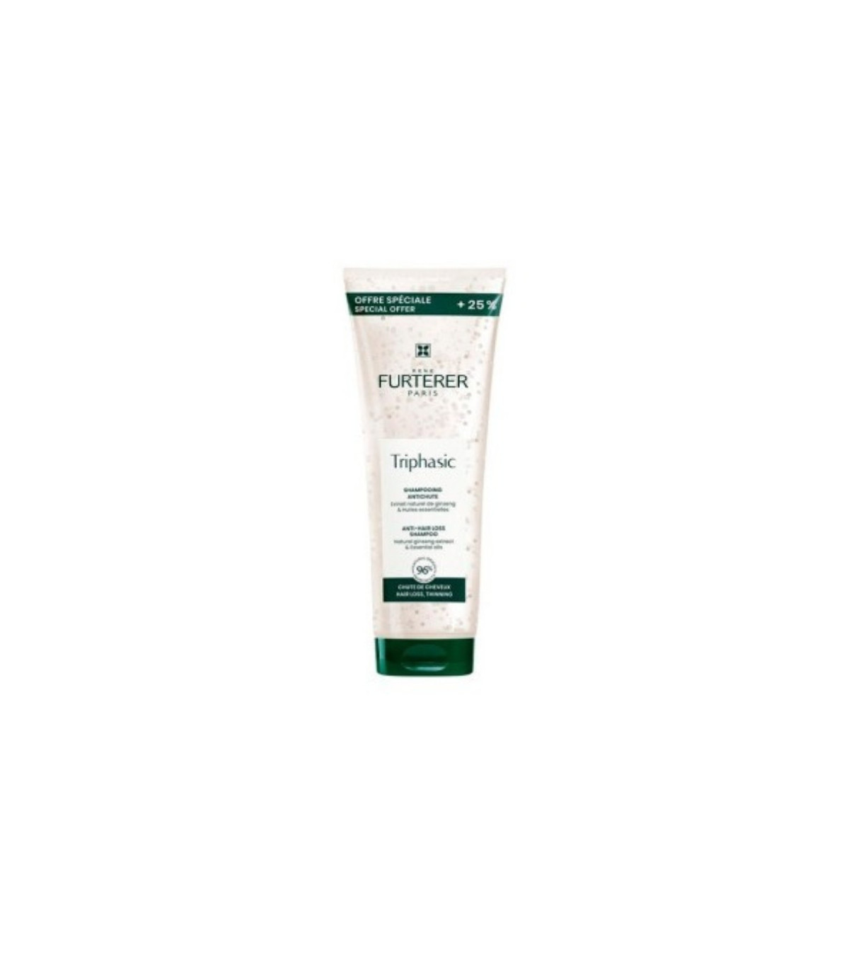 René Furterer Triphasic Champú Complemento Anticaída está diseñado para fortalecer el cabello debilitado y preparar el cuero cabelludo para los tratamientos anticaída. Su fórmula combina ATP, extracto de Pfaffia y una sinergia de aceites esenciales (lavanda, naranja, romero) que estimulan la microcirculación y nutren el folículo piloso.
