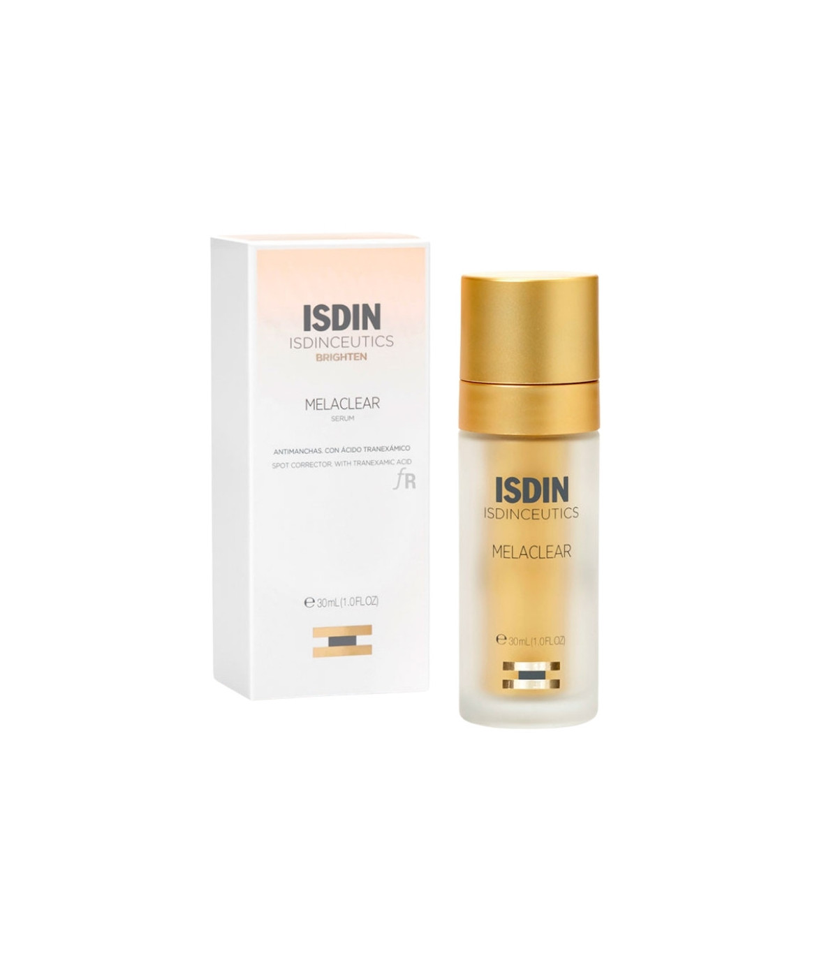 El ISDIN CEUTICS Melaclear Sérum 30 ml es un tratamiento avanzado para la piel con manchas y tono desigual. Su fórmula combina ingredientes despigmentantes y exfoliantes que actúan para reducir la apariencia de manchas solares, postinflamatorias o de otro tipo, mejorando la uniformidad del rostro.