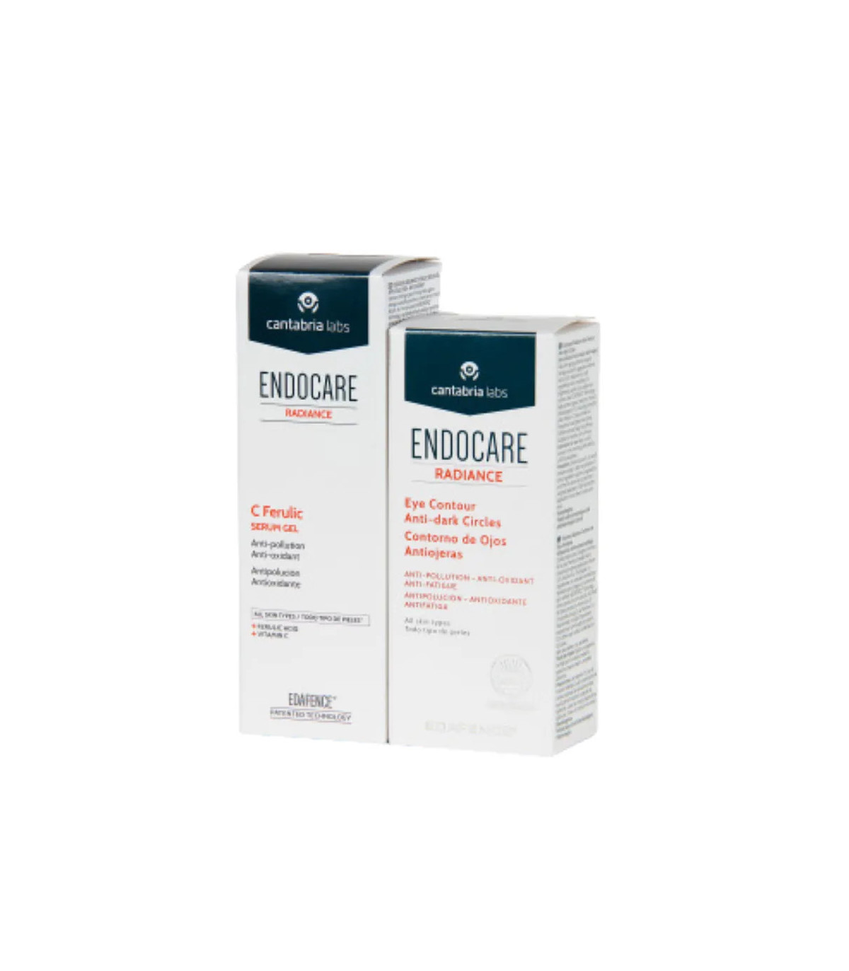 Pack facial que incluye serum y crema Endocare Radiance, formulados para iluminar la piel, unificar el tono y combatir signos de envejecimiento y fatiga. Ideal para piel opaca y con manchas.