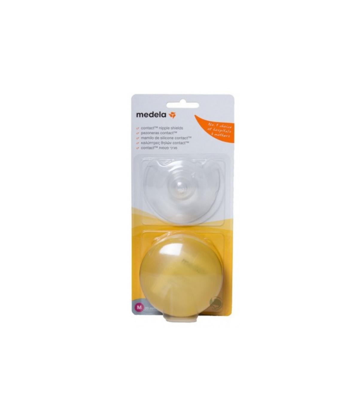 Pack de 2 pezoneras de silicona Contact talla M 20 mm. Protegen pezones sensibles y facilitan una lactancia cómoda y sin dolor.