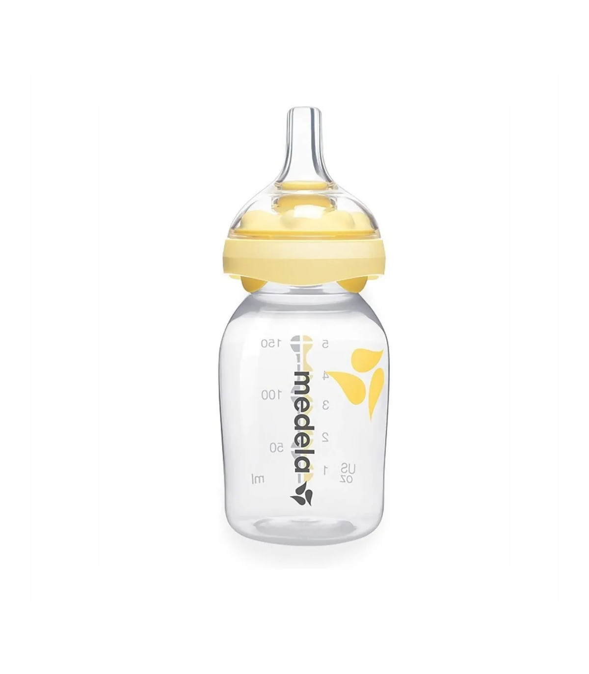 Llenar con leche materna extraída o fórmula (no recomendada por Medela) hasta marcar 150 ml.
