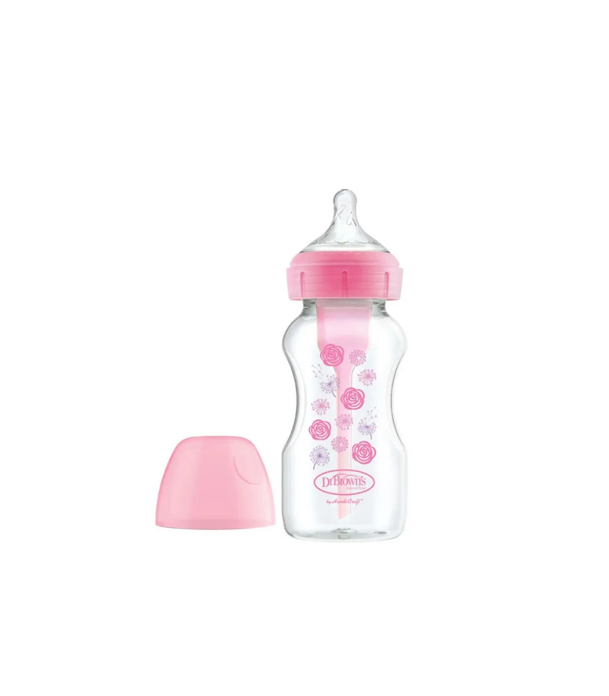 Dr. Brown’s Biberón Boca Ancha Rosa 150 ml, con sistema anticólicos y tetina de silicona. Alimentación segura y cómoda desde los primeros días.
