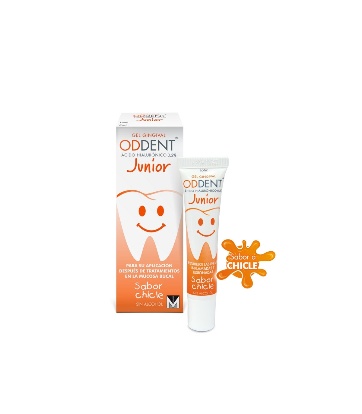 Oddent Gel Gingival Junior 15 ml alivia y regenera las encías de los niños gracias al ácido hialurónico. Ideal en casos de inflamación, heridas o aparatos dentales.