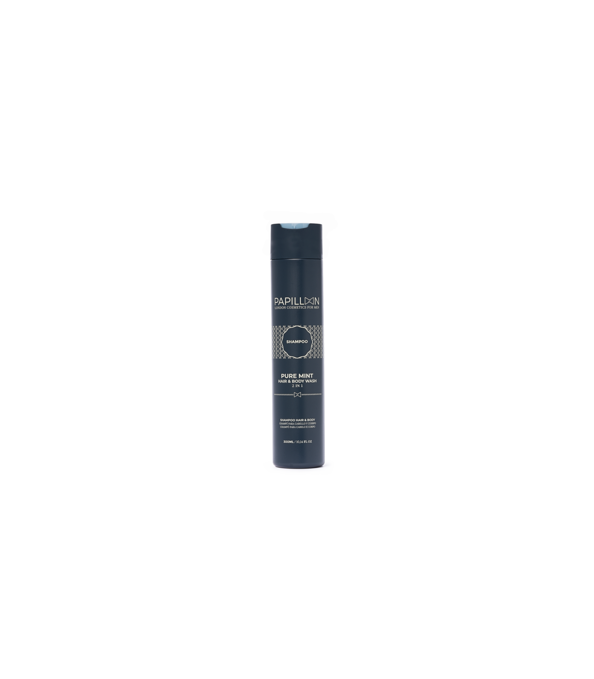 Papillon Pure Mint Hair & Body es un gel champú 2‑en‑1 refrescante con aroma de menta y vitamina E. Limpia suavemente cabello, barba y cuerpo, aportando frescor, suavidad y sensación revitalizante desde el primer uso.