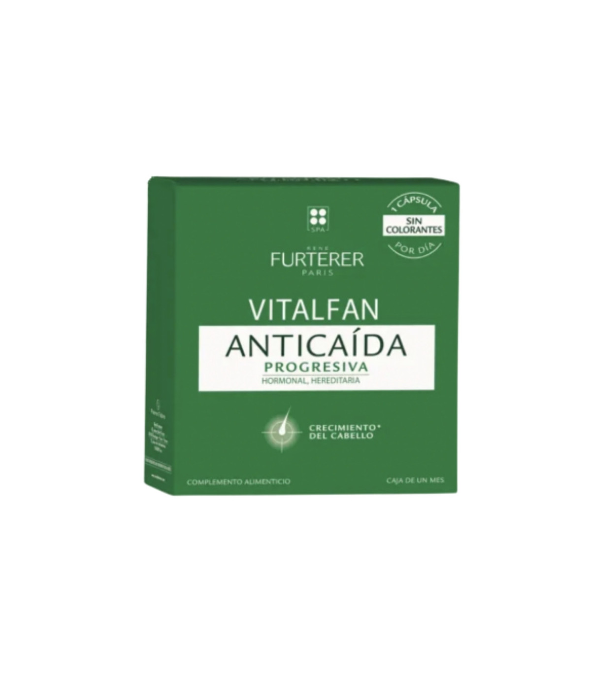 René Furterer Pack Vitalfan Anticaída Progresiva es un complemento alimenticio formulado para frenar la caída del cabello crónica o de origen hormonal (alopecia androgenética). Su fórmula contiene activos clave como Serenoa repens, vitamina B8 (biotina), vitamina E y zinc, que actúan sobre los factores responsables de la caída progresiva.