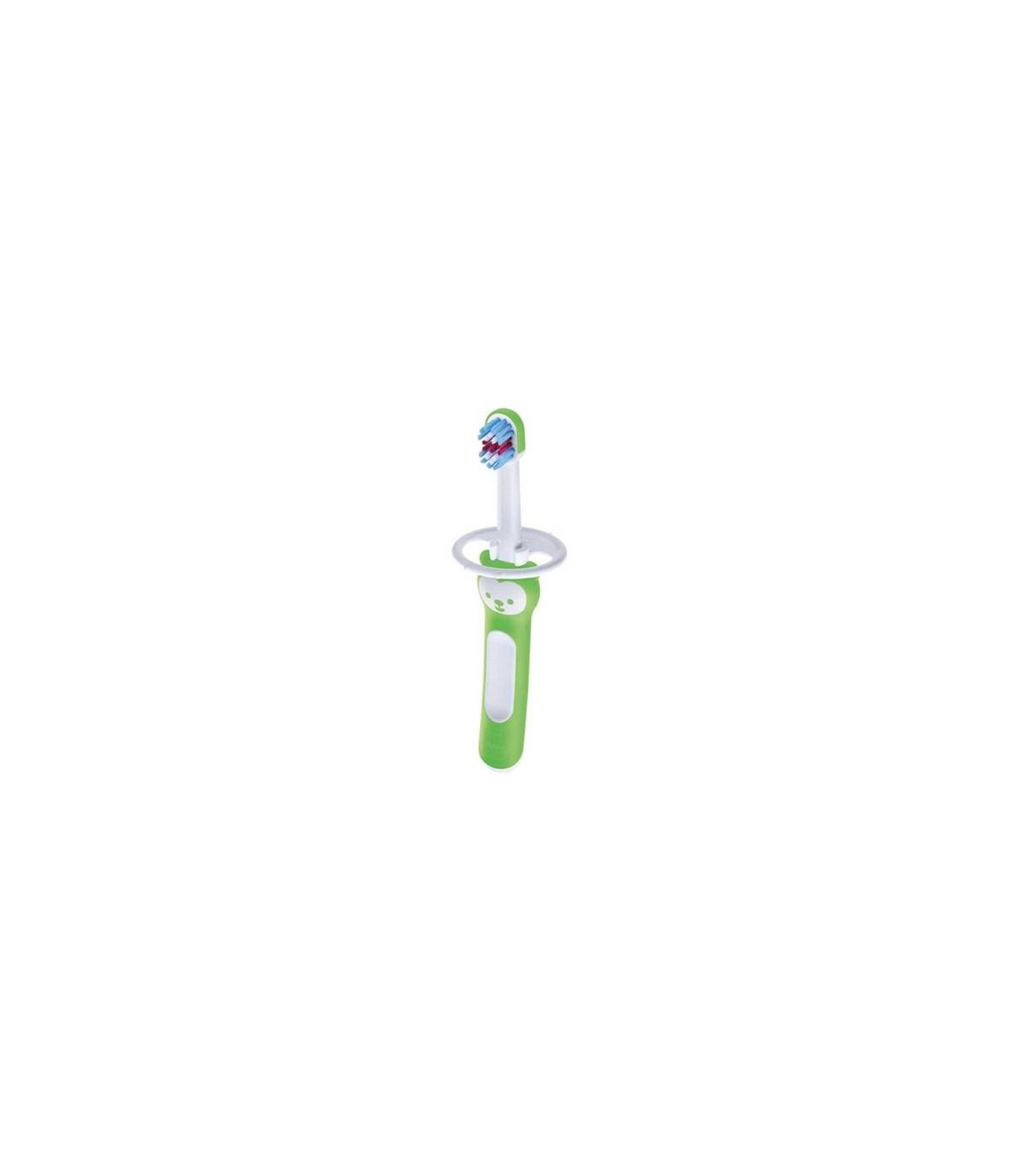 Cepillo de dientes para bebés mayores de 6 meses. Filamentos extrasuaves y diseño adaptado a bocas pequeñas. Promueve la higiene bucal desde temprana edad.
