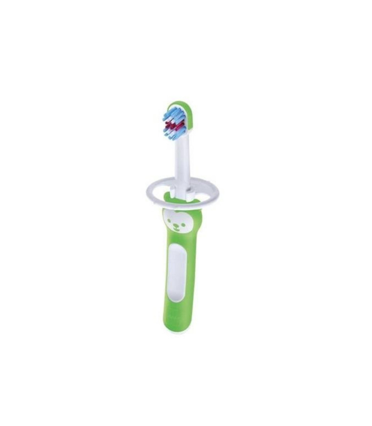El MAM Training Brush Neutro ayuda a los bebés a aprender a cepillarse. Mango largo para usar con los padres, cerdas suaves y cabezal pequeño adaptado a su boca.