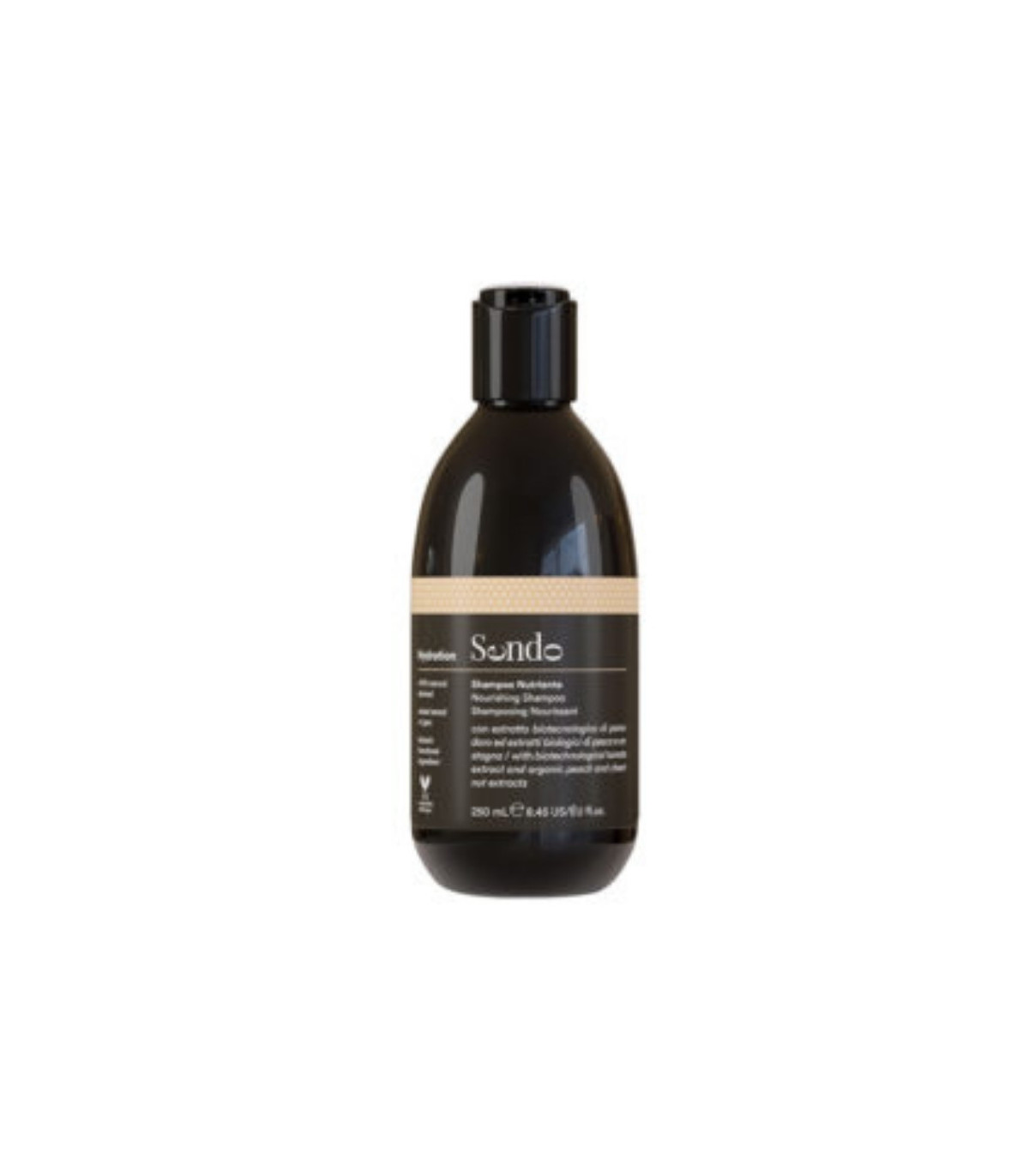Sendo Champú Nutriente limpia con suavidad mientras nutre en profundidad el cabello seco o dañado. Fórmula natural y vegana para uso frecuente.