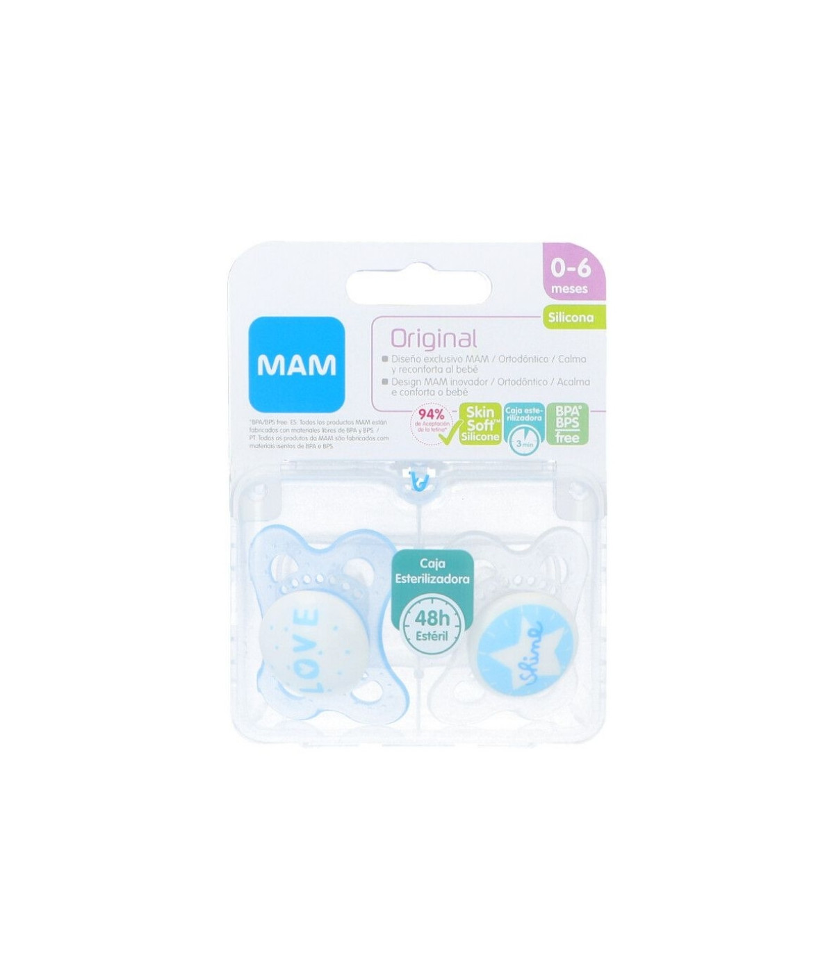 Incluye una caja esterilizadora y de transporte, práctica para mantener el chupete siempre limpio y listo para usar. Un accesorio funcional, higiénico y seguro, avalado por la calidad MAM.