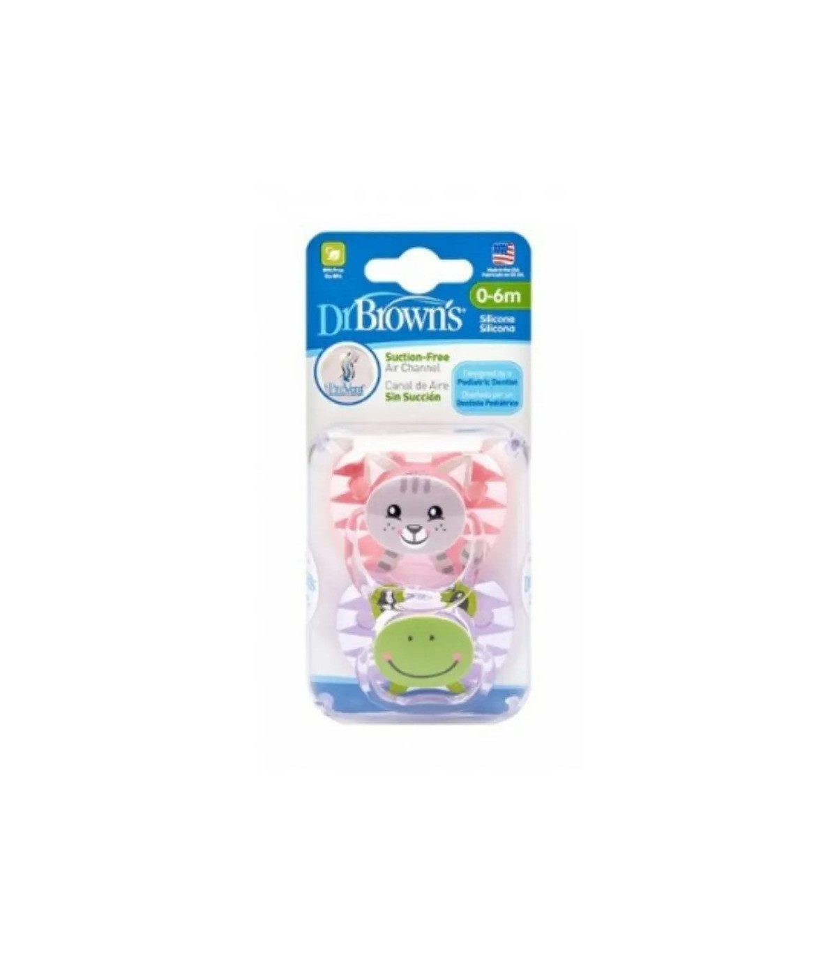 Chupete Dr. Brown’s Prevent Classic Animal para recién nacidos, tetina de silicona médica, diseño ergonómico y estampado animal divertido.