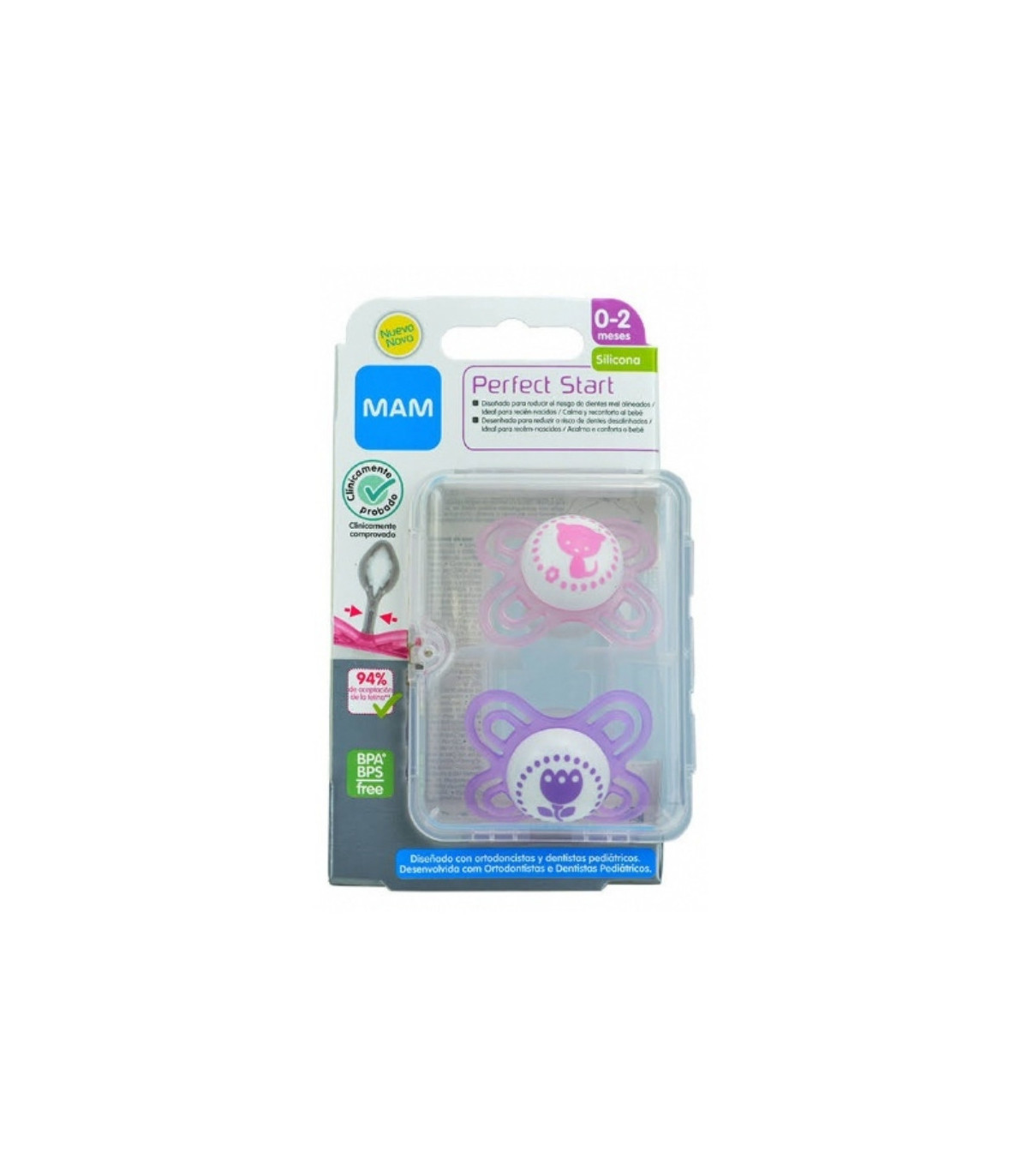 Pack de 2 chupetes MAM Perfect Silicona 0-6m, ultrafinos y ergonómicos. Seguridad y comodidad para los primeros meses del bebé.