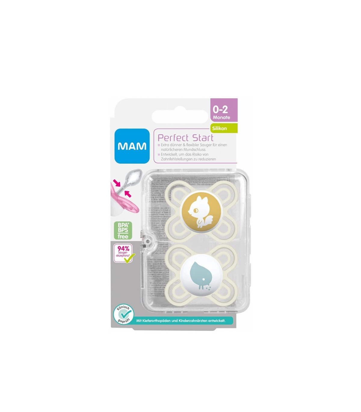 Chupetes MAM Perfect Start Silicona 0-2m, pack especial recién nacido. Ultraligeros y seguros, con tetina SkinSoft.