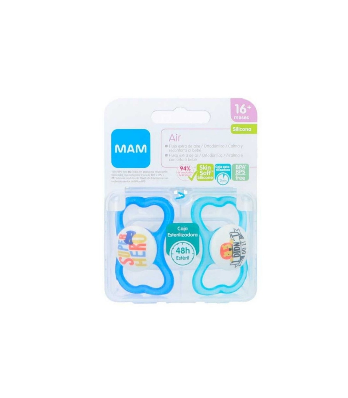 MAM Air Silicona 0-6m, pack de 2 chupetes ventilados y ligeros. Tetina SkinSoft que respeta dientes y encías del bebé.