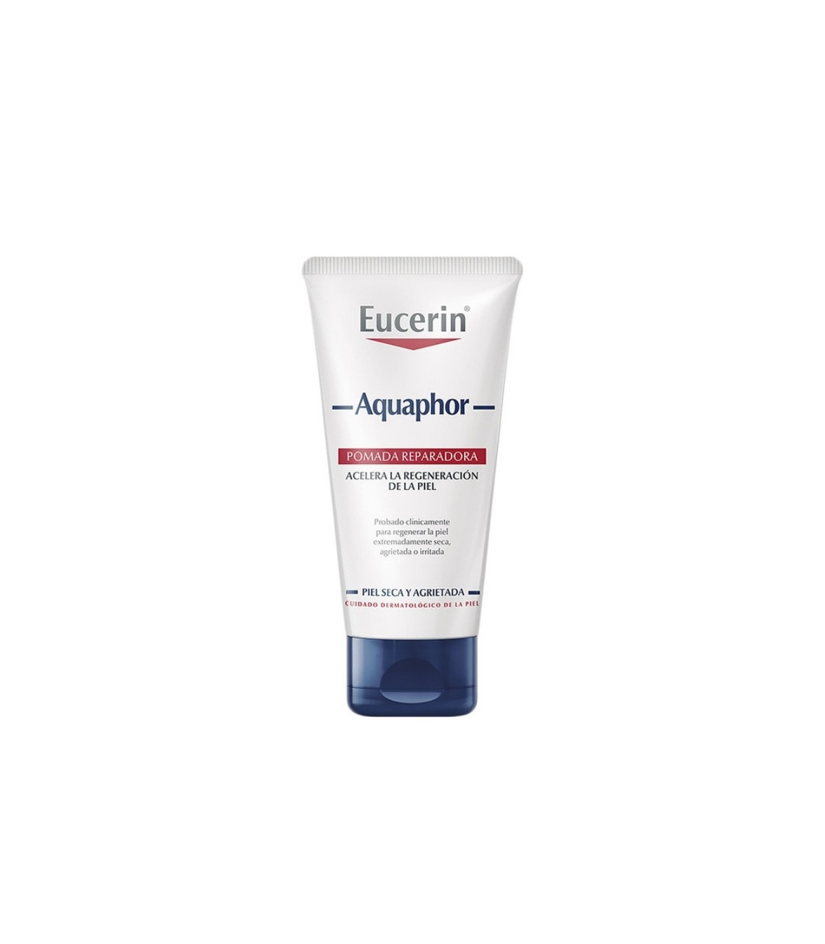 Eucerin Aquaphor es una pomada reparadora sin perfume ni conservantes, perfecta para regenerar la piel seca, agrietada o irritada. Formato de 40g ideal para llevar siempre contigo.