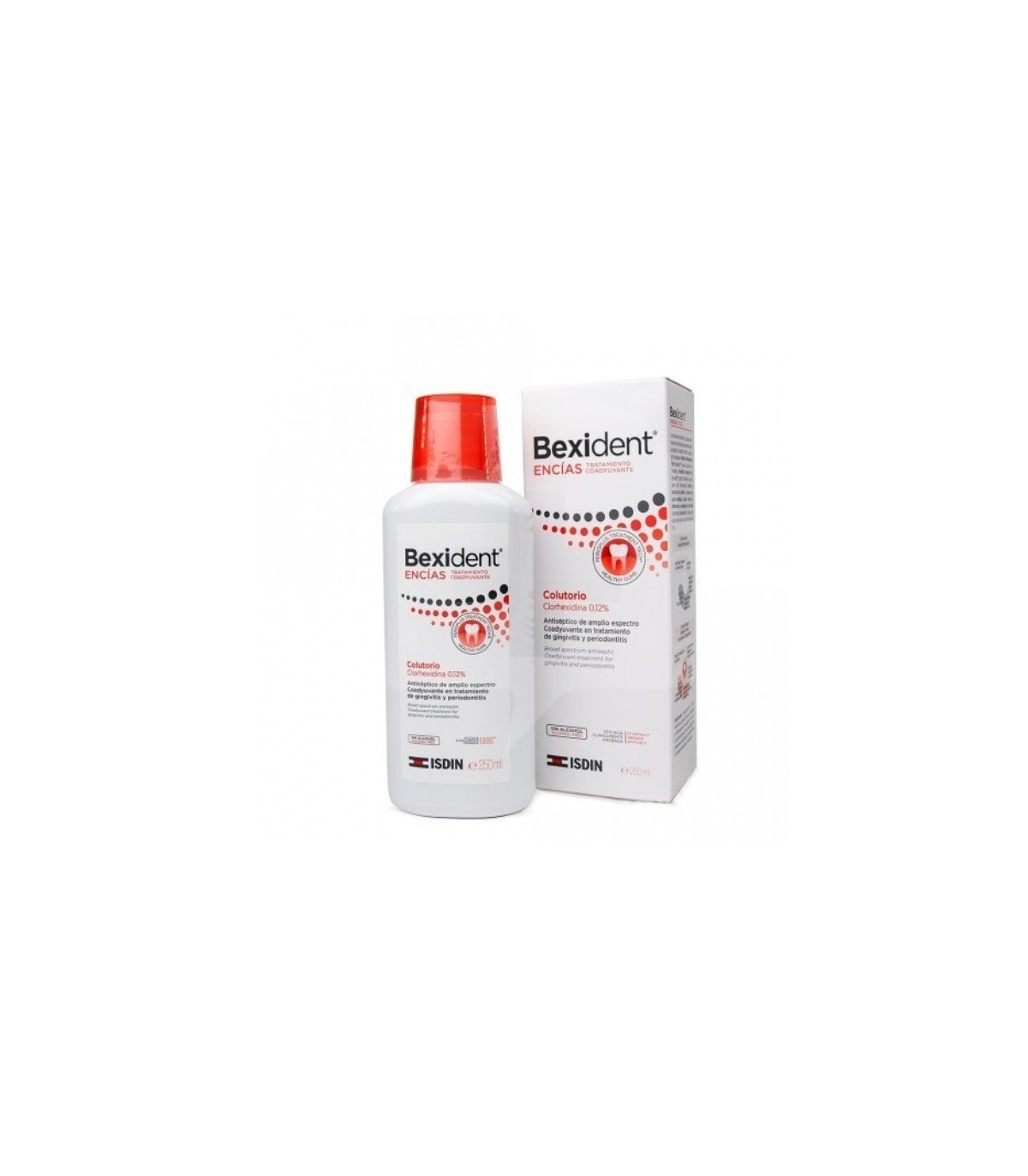 Bexident Encías Colutorio 250 ml es un enjuague bucal de uso diario formulado para el cuidado completo de las encías sensibles, con tendencia al sangrado o a la inflamación. Contiene clorhexidina y un complejo bioadhesivo de Triclosán y Dexpantenol, que actúan de forma prolongada reduciendo la placa bacteriana, aliviando las encías y ayudando a prevenir la gingivitis.