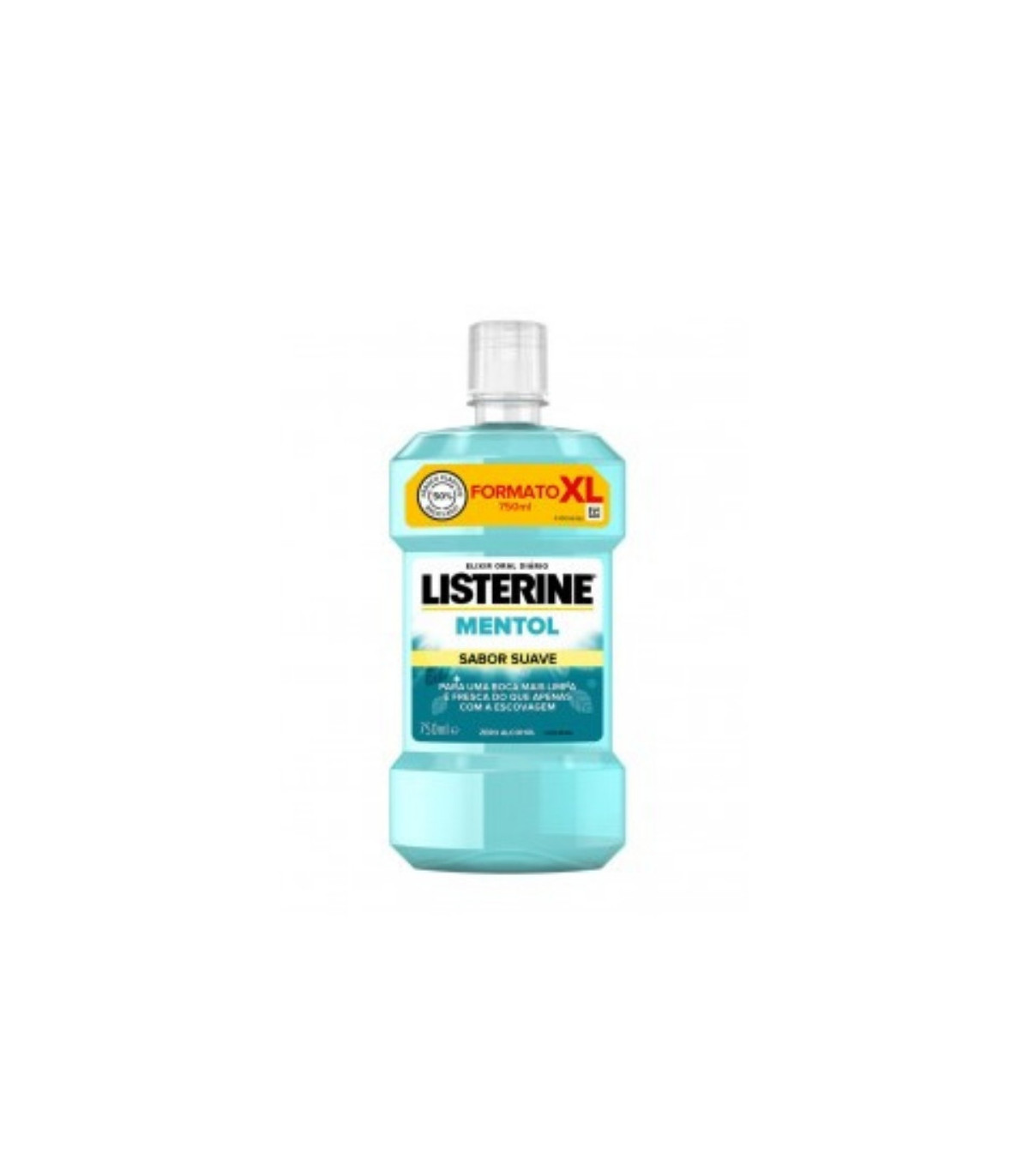 Listerine Mentol Suave Zero 750 ml elimina gérmenes y placa sin alcohol, con un sabor más suave y agradable. Protección completa con frescor delicado.