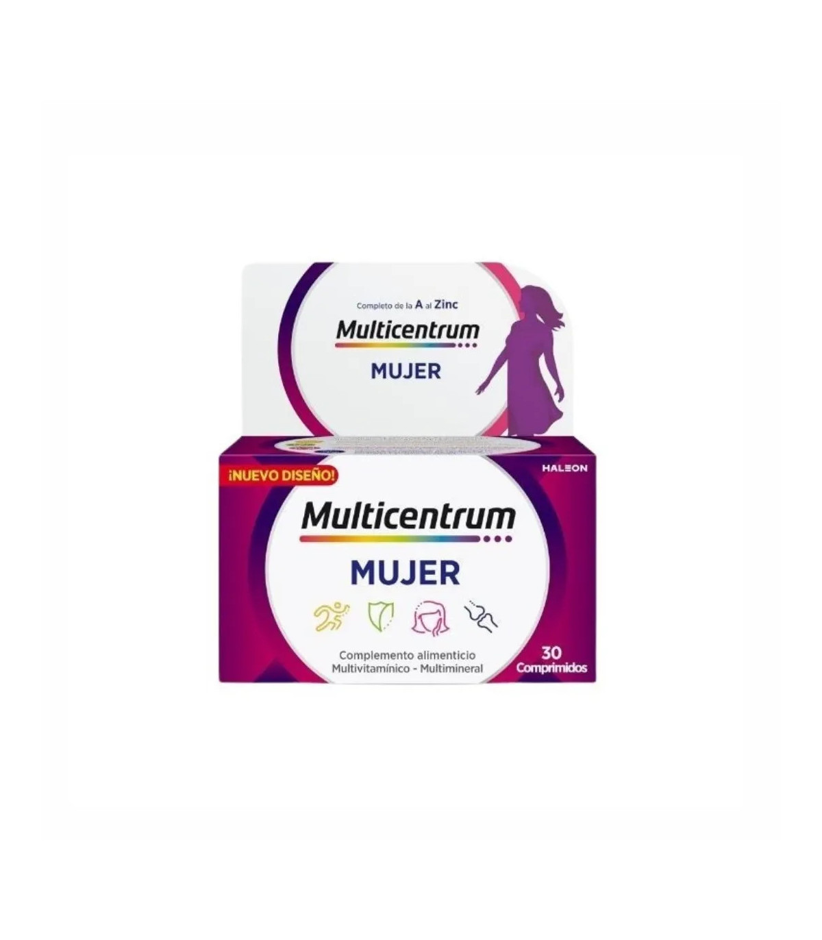 Multicentrum Mujer es un multivitamínico completo que ayuda a cubrir las necesidades nutricionales diarias de las mujeres, aportando energía, vitalidad y refuerzo inmunitario.