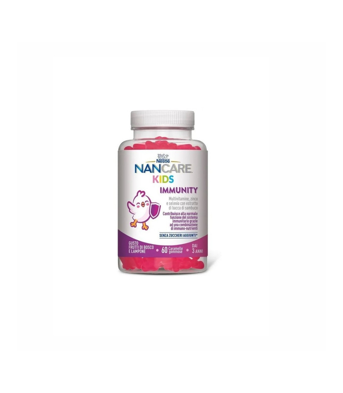 NANCARE Kids Inmunidad 30 Gominolas es un suplemento alimenticio diseñado para apoyar y reforzar las defensas naturales del organismo en niños a partir de 3 años. Su fórmula combina ingredientes seleccionados por su papel clave en la función inmunitaria y antioxidante, con un formato apetecible y seguro.