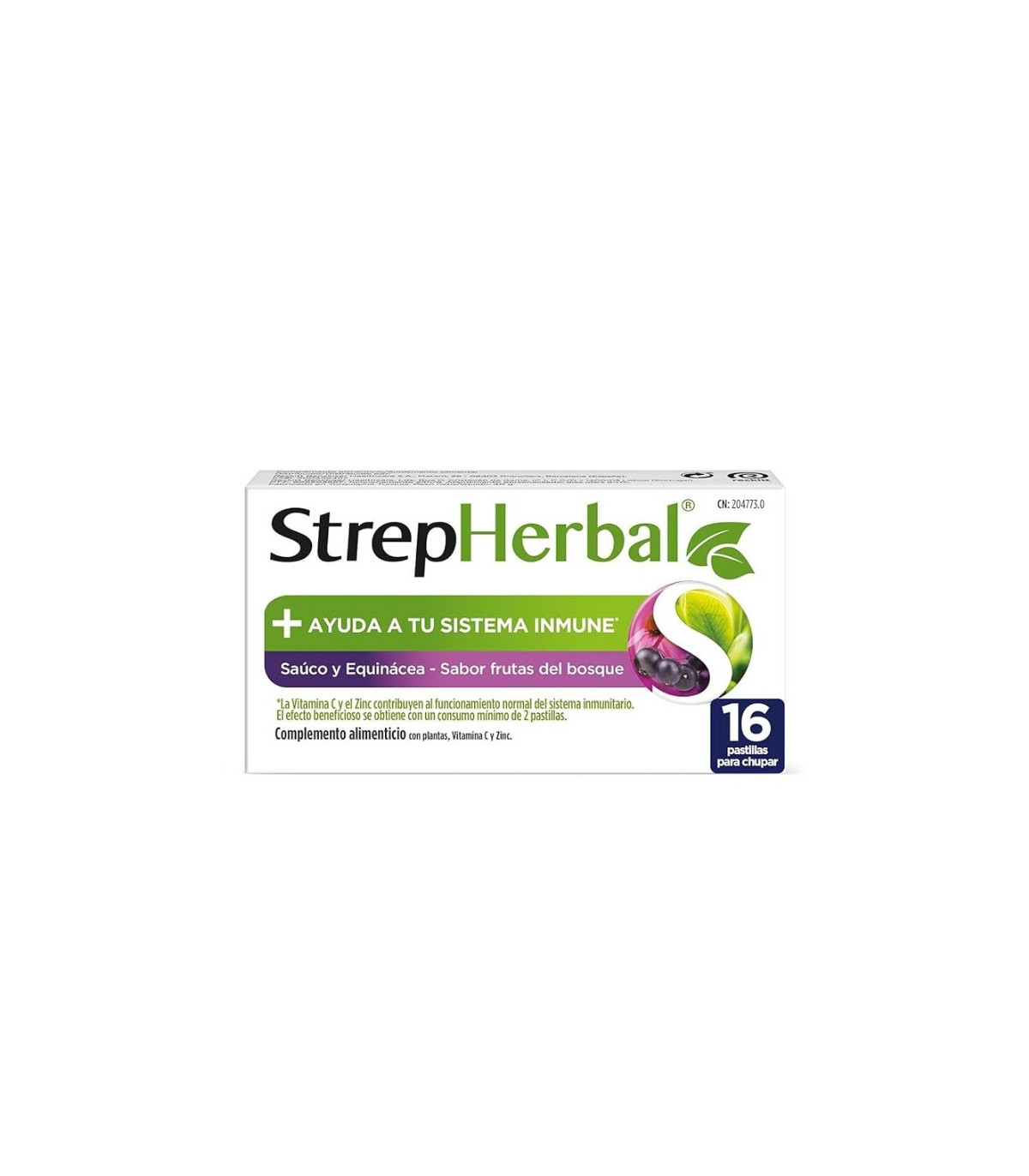 Strepherbal Saúco y Equinácea son pastillas para chupar (16 unidades) que combinan extractos vegetales, vitamina C y zinc. Con sabor a frutos del bosque y sin azúcar. Refuerza el sistema inmunitario, suaviza la garganta y apto para mayores de 12 años.