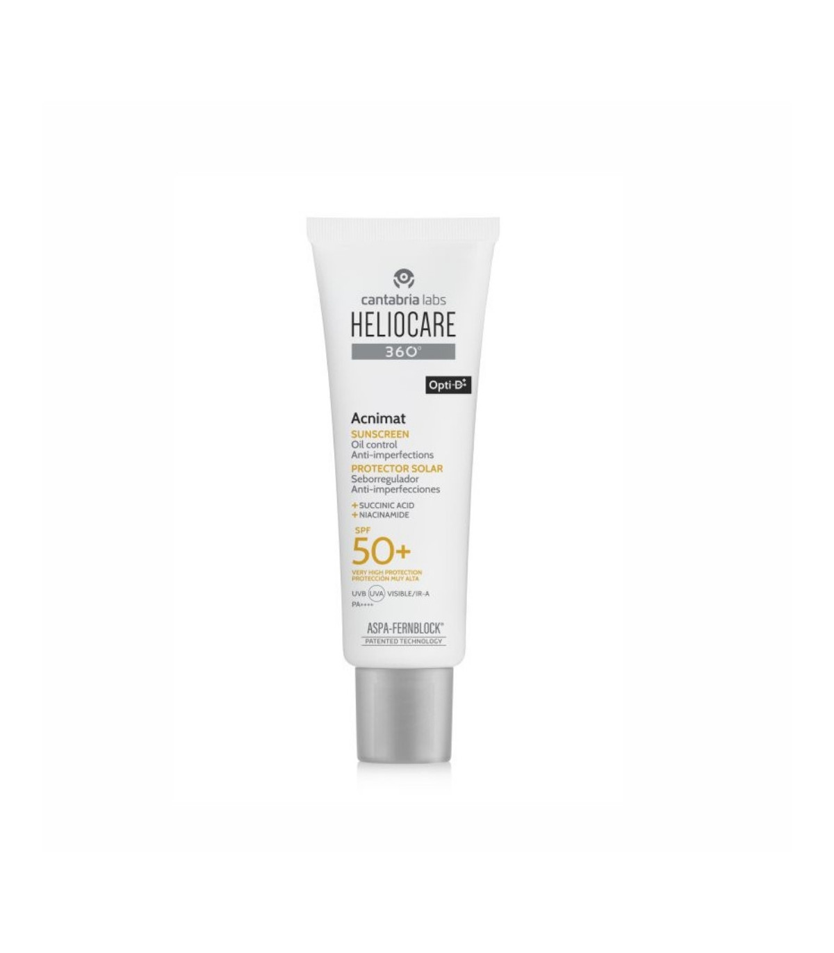Heliocare 360 Acnimat es un protector solar facial con SPF 50+, diseñado para pieles grasas o con acné. Incluye ácido succínico, niacinamida y Pixalia que ayudan a regular el sebo y combatir imperfecciones. Su fórmula oil‑free garantiza un acabado mate durante 12 horas y reduce la secreción grasa hasta un 42 %.