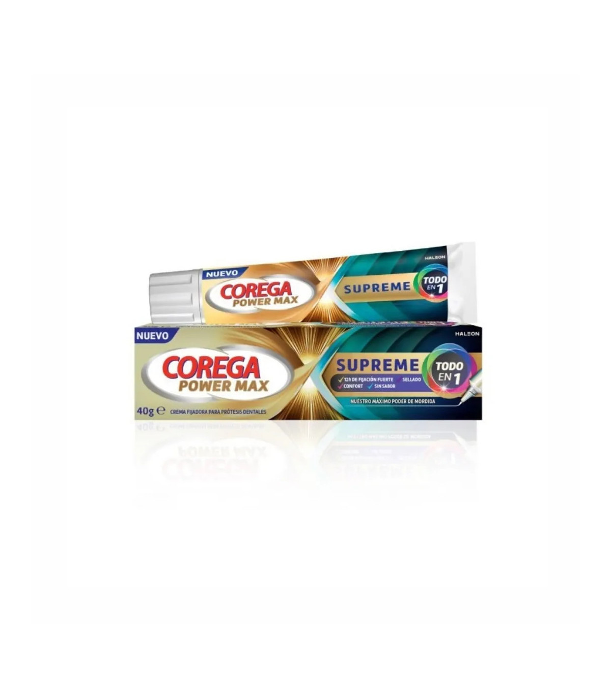Corega Supreme Power Max 40 g es una crema fijadora de alta eficacia diseñada para ofrecer la máxima fijación y un sellado total, evitando que se filtren restos de alimentos entre la prótesis dental y las encías. Su avanzada fórmula mejora la comodidad diaria y proporciona una sujeción firme durante horas, ayudando a mantener la confianza al hablar, comer o sonreír.