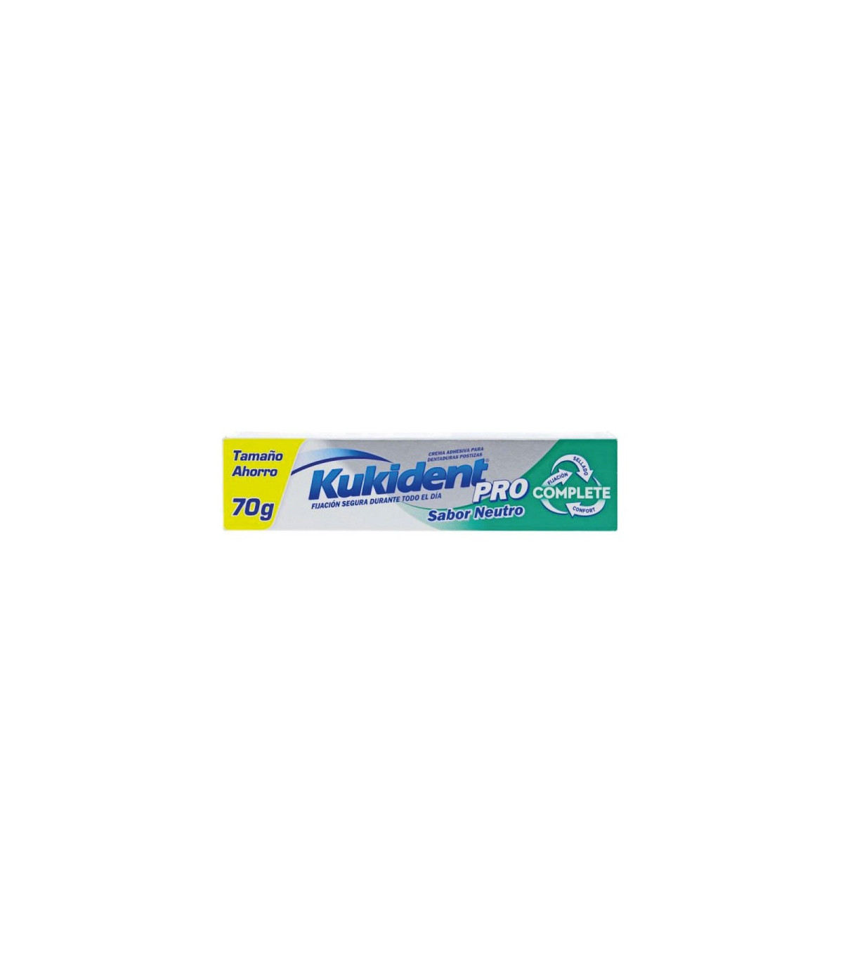 Kukident Complete Neutro 70 g es una crema adhesiva para prótesis dentales que garantiza una fijación fuerte y duradera durante todo el día, sin alterar el sabor de los alimentos. Gracias a su fórmula sin aroma ni sabor, es ideal para quienes desean una experiencia neutra y discreta al usar dentaduras postizas.