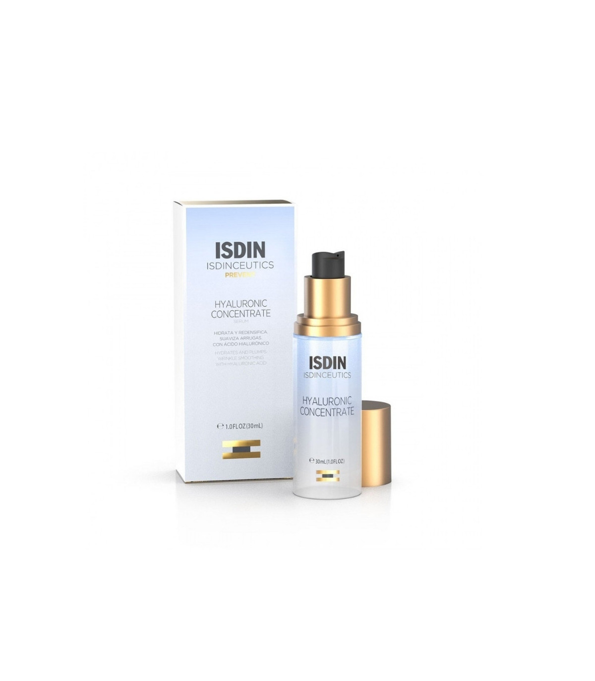 ISDINCEUTICS Hyaluronic Concentrate 30 ml es un sérum facial de alta eficacia formulado con ácido hialurónico puro de bajo y medio peso molecular, que actúa en distintas capas de la piel para proporcionar una hidratación profunda y duradera.