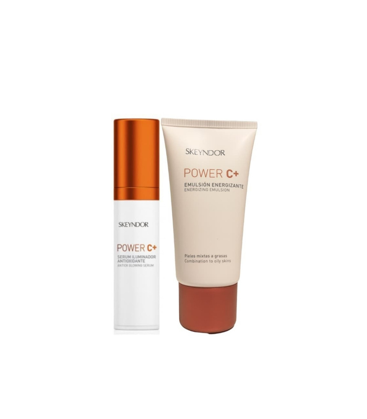 Kit Power C de Skeyndor para piel mixta y grasa, con vitamina C estabilizada que ilumina, hidrata y controla el brillo, mejorando la textura y aportando un aspecto saludable.