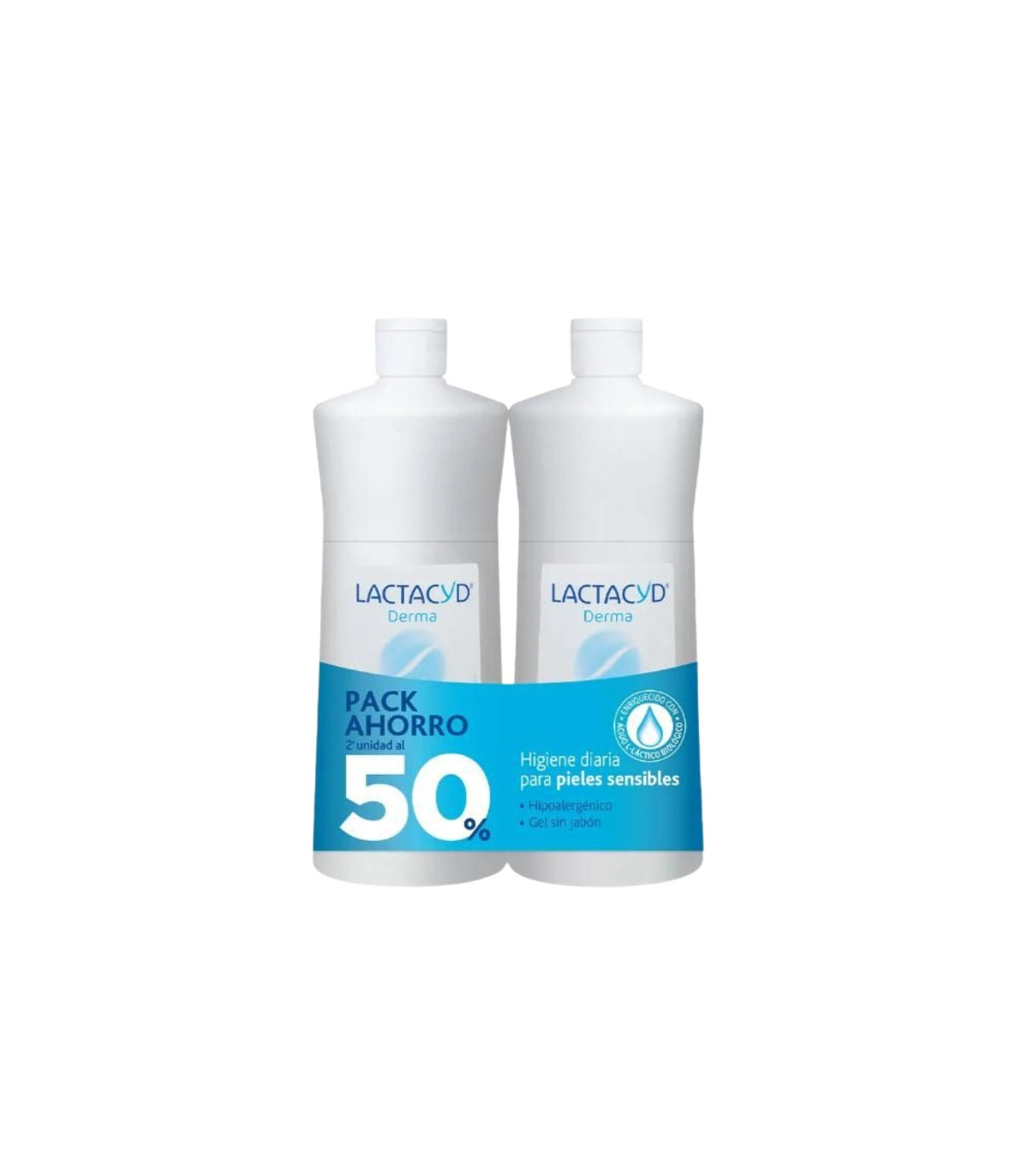 Pack dúo de gel de higiene íntima Lactacyd Derma (2×1 L) con fórmula pH 4,5 ultrasuave y sin jabón, que protege la flora vaginal, alivia la sequedad y el picor, respetando la delicada piel de la zona íntima.