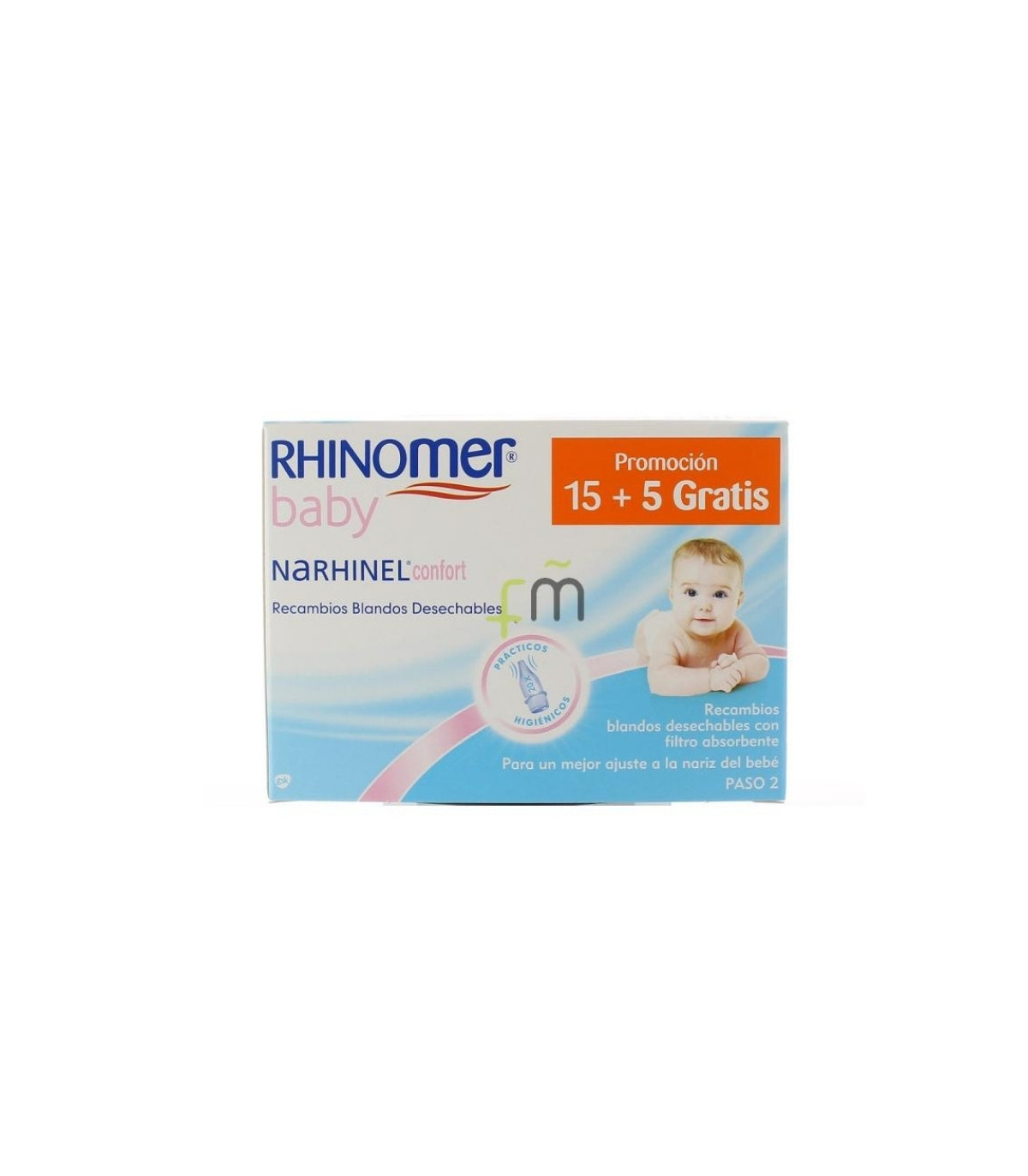 Los Recambios Blandos Narhinel Confort Aspirador Nasal son accesorios diseñados para mantener la higiene nasal de los bebés de manera segura y eficaz. Fabricados con materiales suaves, garantizan una limpieza delicada sin irritar las sensibles mucosas nasales.