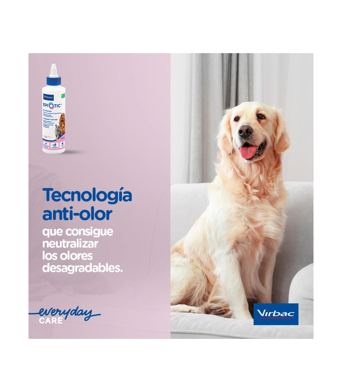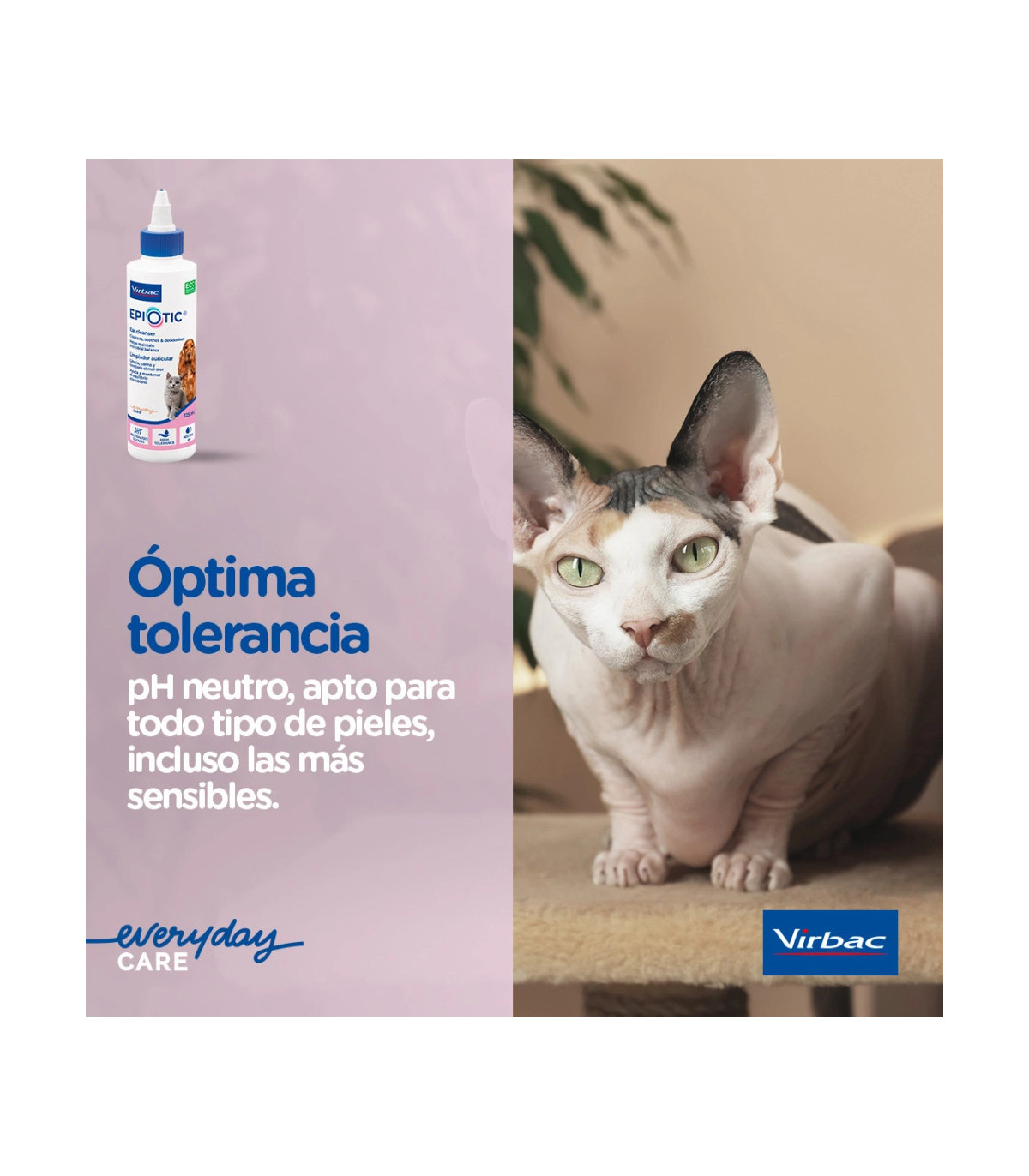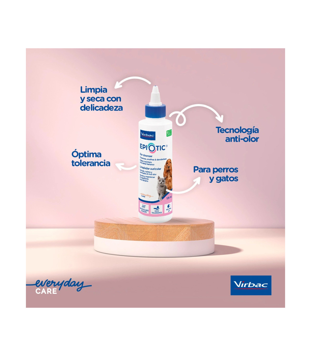 EPI-OTIC 125 ml es una solución limpiadora auricular antiséptica y queratolítica, diseñada específicamente para perros y gatos con predisposición a otitis externas. Su formulación de alta tolerancia, con pH neutro, combina ácido salicílico (2 mg/ml), docusato sódico, PCMX, EDTA y un sistema glicotecnológico (L-ramnosa, D-galactosa y D-manosa), junto con la tecnología Defensin (extractos de boldo y reina de los prados) destinada a reforzar las defensas naturales de la piel del conducto auditivo