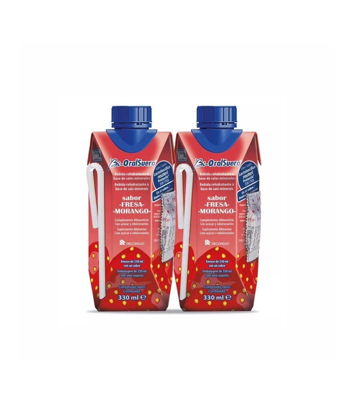 Bi-Oralsuero Fresa Pack 3x200ml es un suero oral en solución lista para usar, formulado para reponer líquidos y electrolitos en casos de deshidratación leve a moderada por diarreas, vómitos, fiebre o exceso de sudoración. Su composición está equilibrada para facilitar la rehidratación y contribuir al bienestar digestivo, especialmente en situaciones donde se requiere reponer rápidamente las sales minerales y líquidos perdidos.