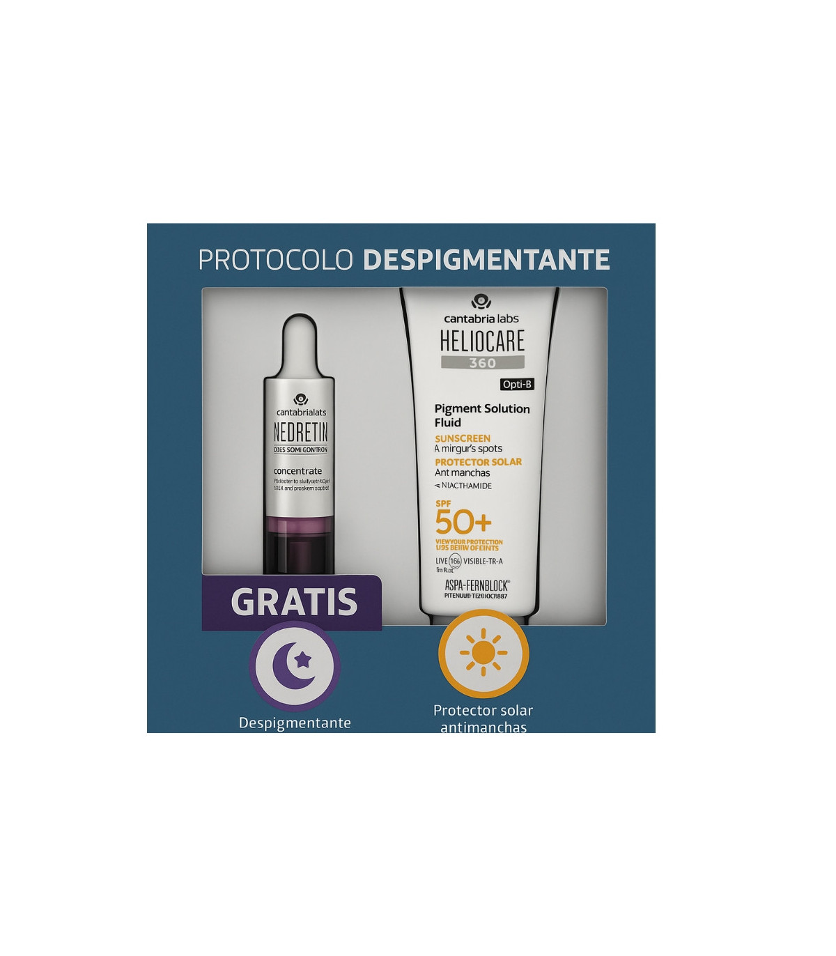 El Protocolo Despigmentante Heliocare 360° combina protección solar de alta gama con tratamiento nocturno despigmentante para corregir manchas, prevenir nuevas y lograr un tono más uniforme y luminoso.