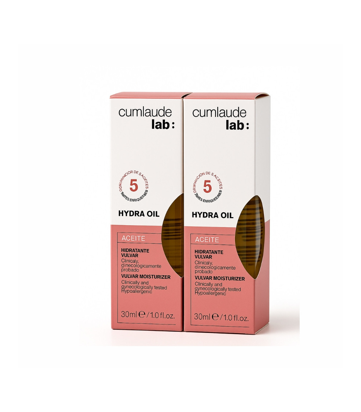 Cumlaude Lab Hydra Oil es un aceite íntimo diseñado para proporcionar hidratación profunda y alivio en la zona vulvar. Su fórmula incluye cinco aceites biotecnológicos fermentados (almendra dulce, germen de arroz, argán, centella asiática y rosa mosqueta), seleccionados por su rápida absorción, efecto emoliente, antioxidante y regenerador.