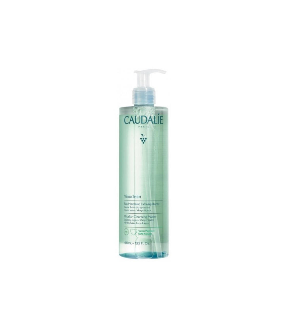 Agua micelar 3 en 1 que desmaquilla, limpia y tonifica rostro y ojos en un solo gesto, respetando el equilibrio natural de la piel y aportando hidratación y confort inmediato gracias al agua de uva bio.