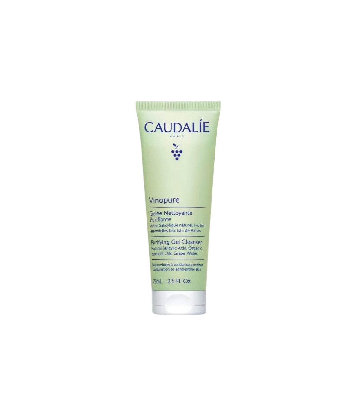 Caudalie Vinopure Gel Purificante 75 ml es el primer paso ideal para pieles mixtas o con tendencia acneica. Su fórmula con un 99 % de ingredientes de origen natural combina: