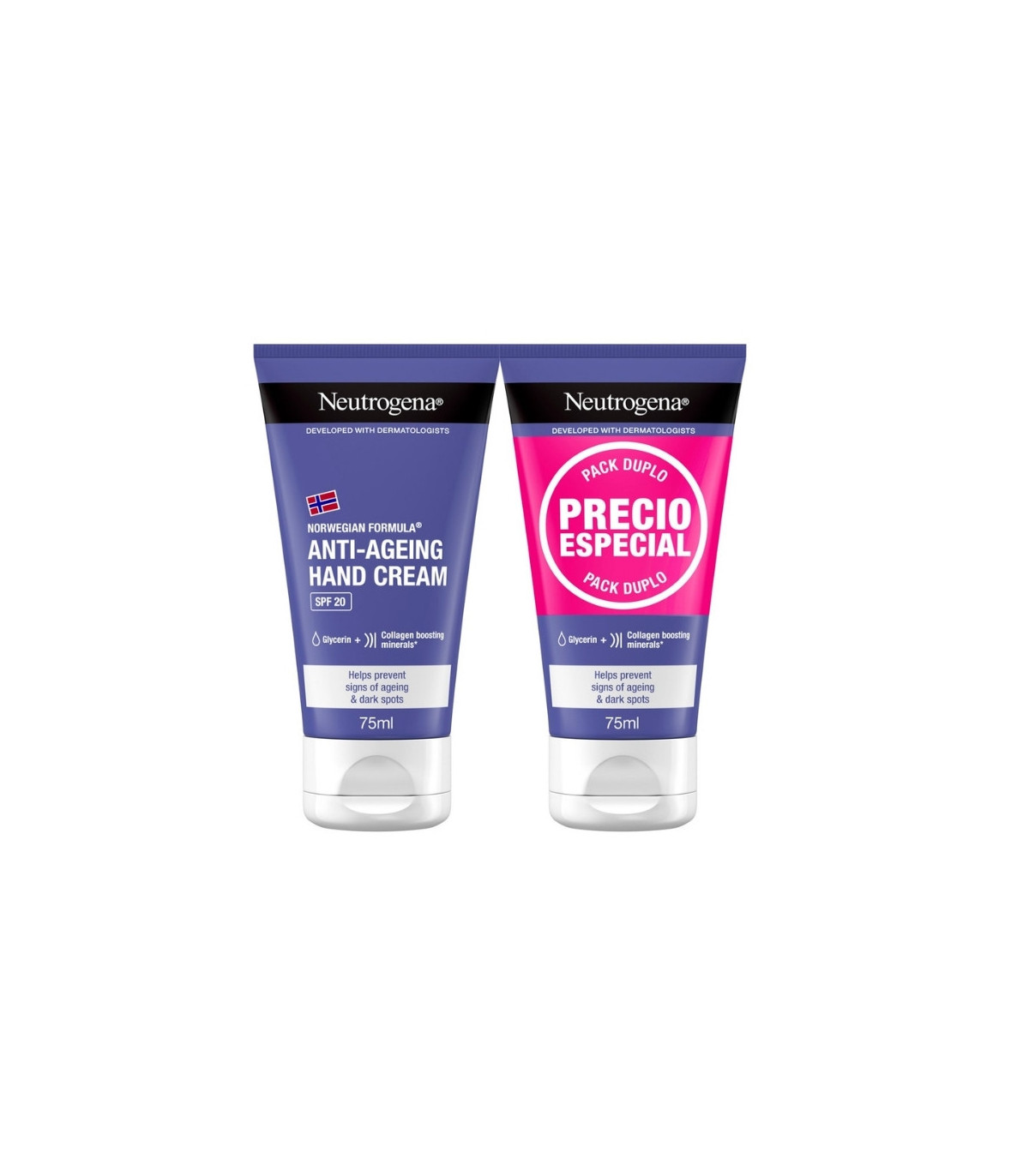La Neutrogena Manos Antiedad VR SPF 20 es una crema especialmente formulada para cuidar las manos, una de las zonas más expuestas al envejecimiento cutáneo. Esta fórmula combina hidratación intensiva con protección solar media (SPF 20), ayudando a prevenir la aparición de manchas y arrugas causadas por la radiación UV.