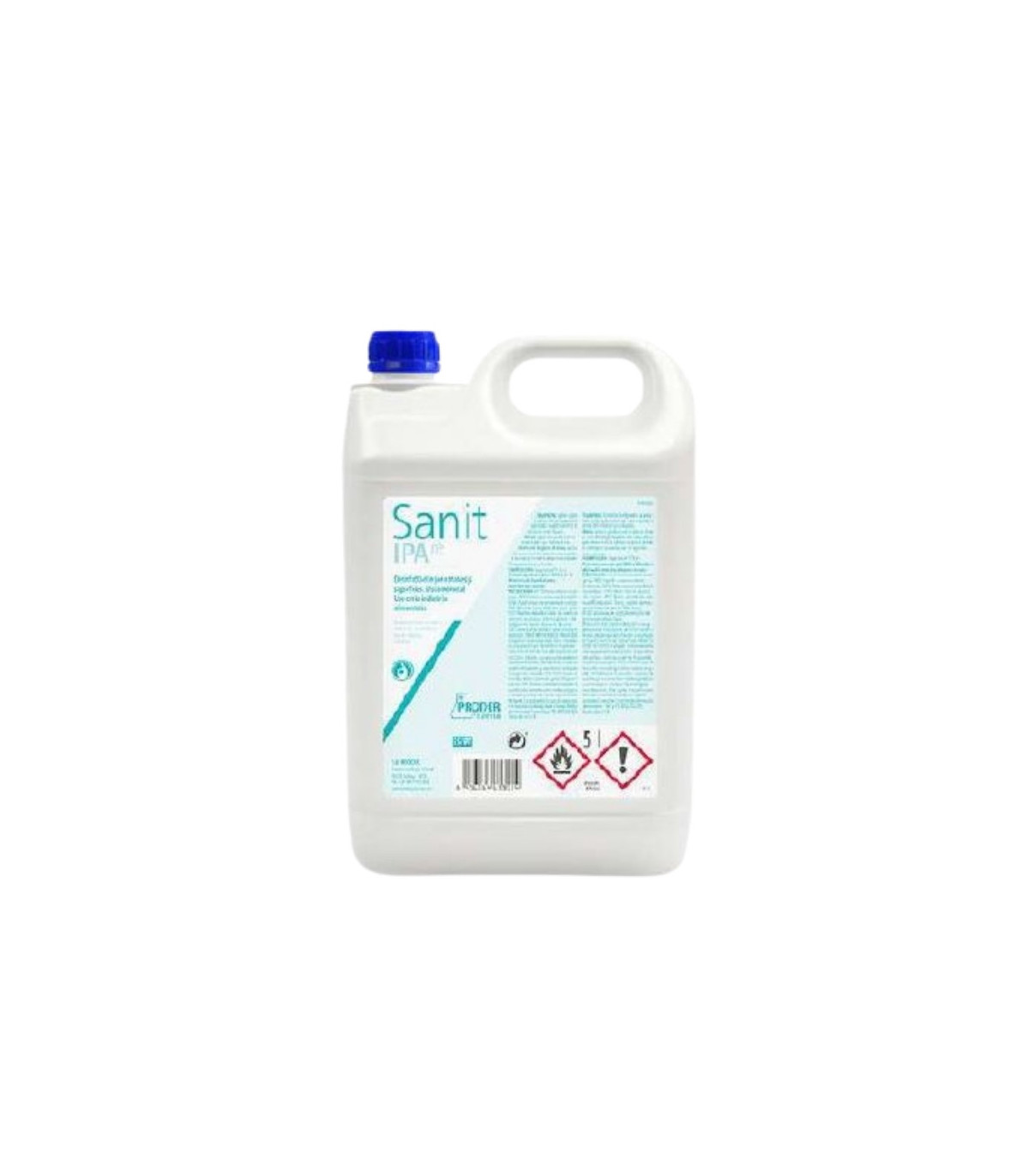 Sanit IPA NE (5 L) es una solución hidroalcohólica de grado farmacéutico diseñada para ofrecer una desinfección eficaz y segura en entornos profesionales y domésticos. Su fórmula contiene:
