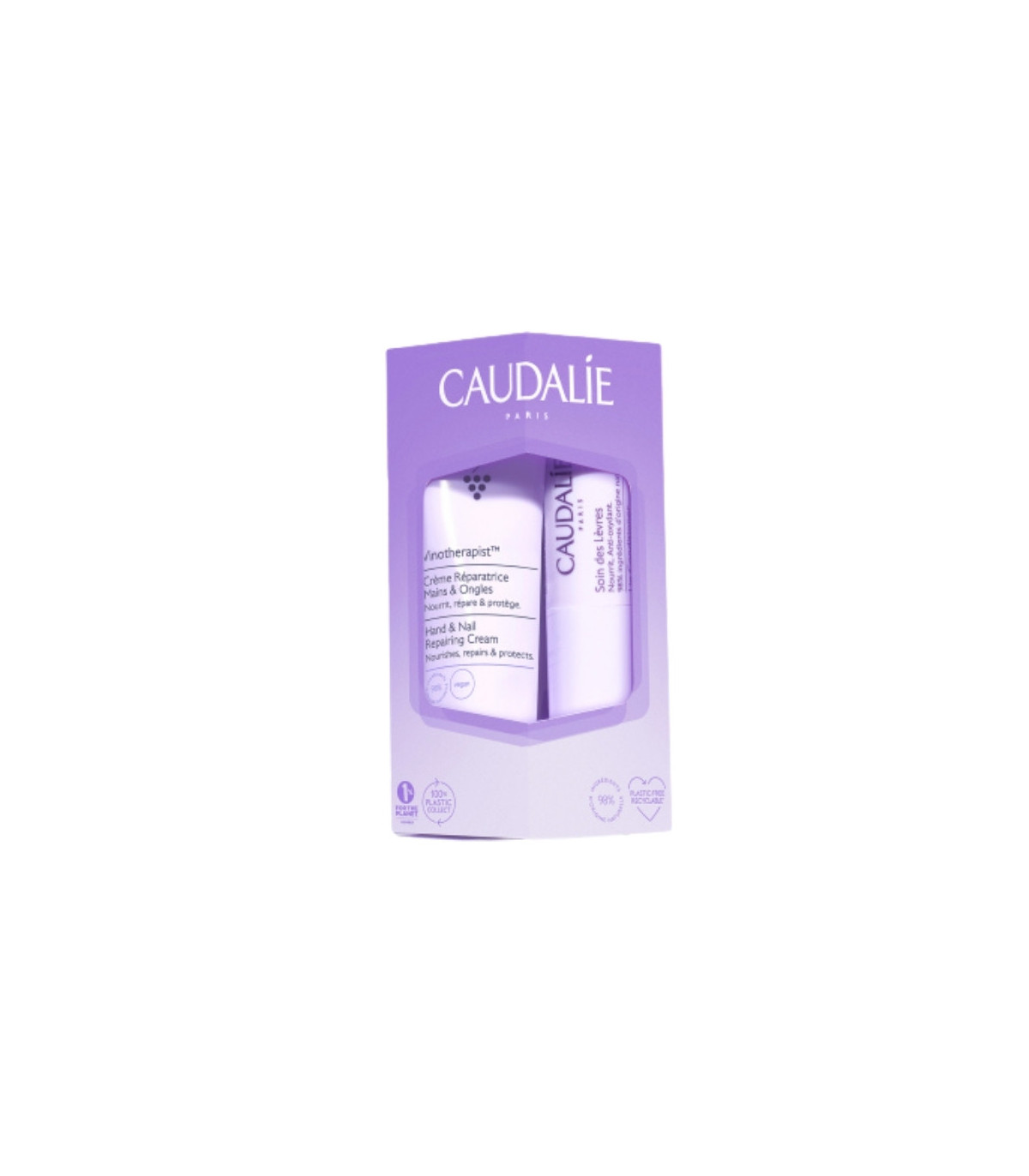 El Duo Vinotherapist de Caudalie reúne dos esenciales de viaje o tocador para un cuidado intensivo de manos y labios: