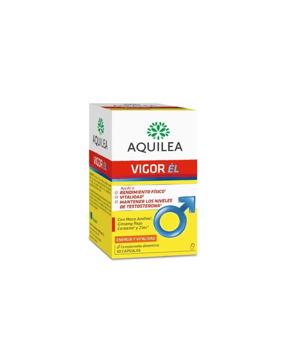 Aquilea Vigor Él 60 Cápsulas es un complemento alimenticio que ayuda a combatir la fatiga, mejorar la vitalidad y reforzar la energía masculina. Con ingredientes naturales como ginseng y tribulus, es perfecto para mantener el rendimiento físico y mental.
